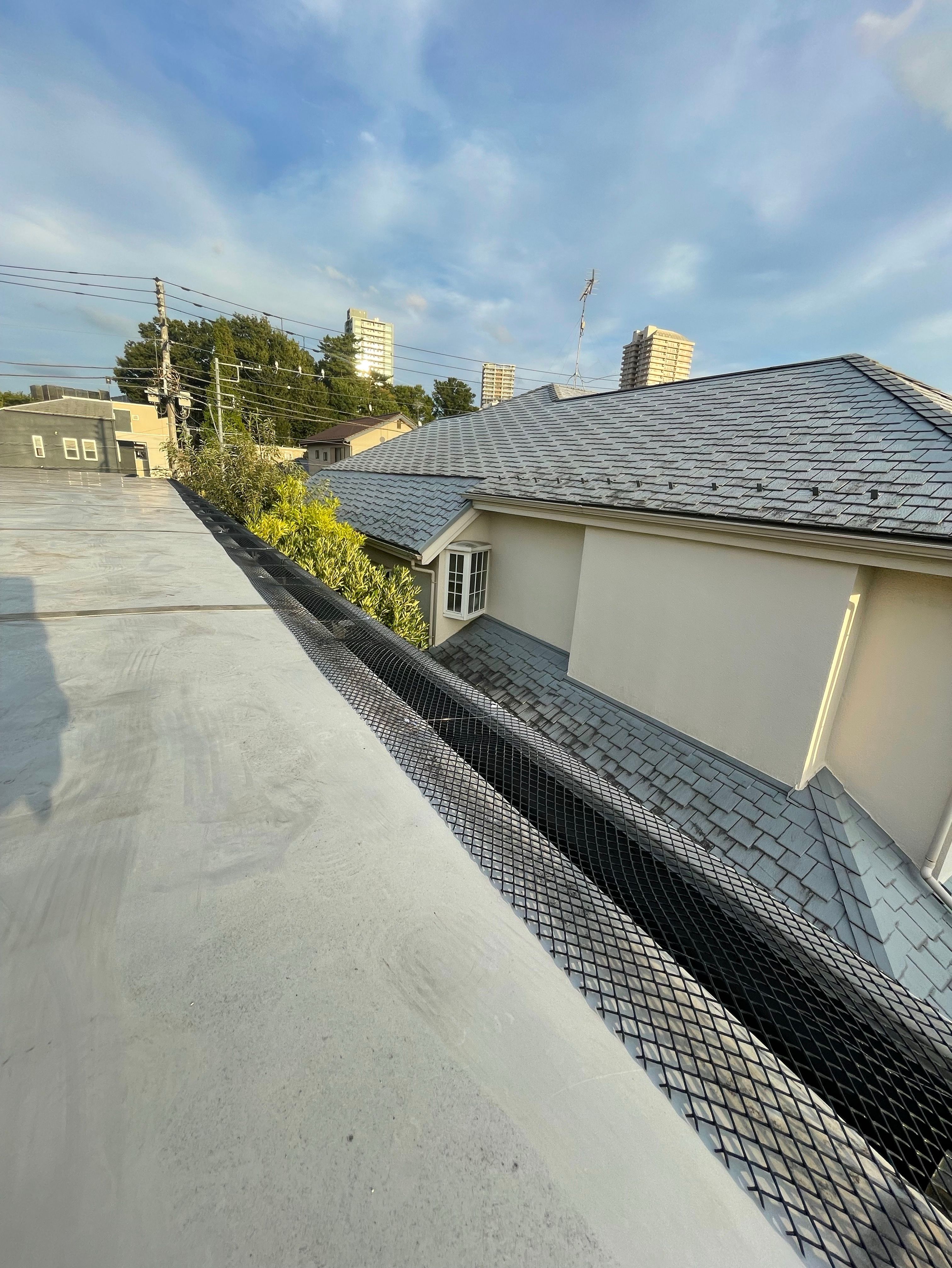 東京都練馬区にて大家様から雨樋清掃のご依頼です!雨樋清掃、詰まり箇所高圧洗浄、雨樋70メートル分ネット取り付けをさせていただきました!