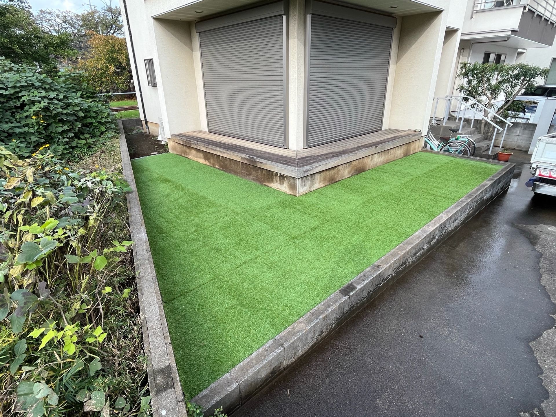 千葉県松戸市お客様が用意された、人工の芝施工作業を致しました。ご自身で、ご用意された人工芝等、施工致します。ご相談下さい。