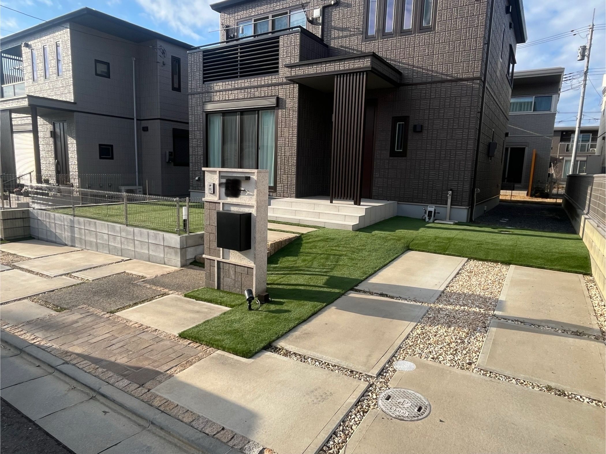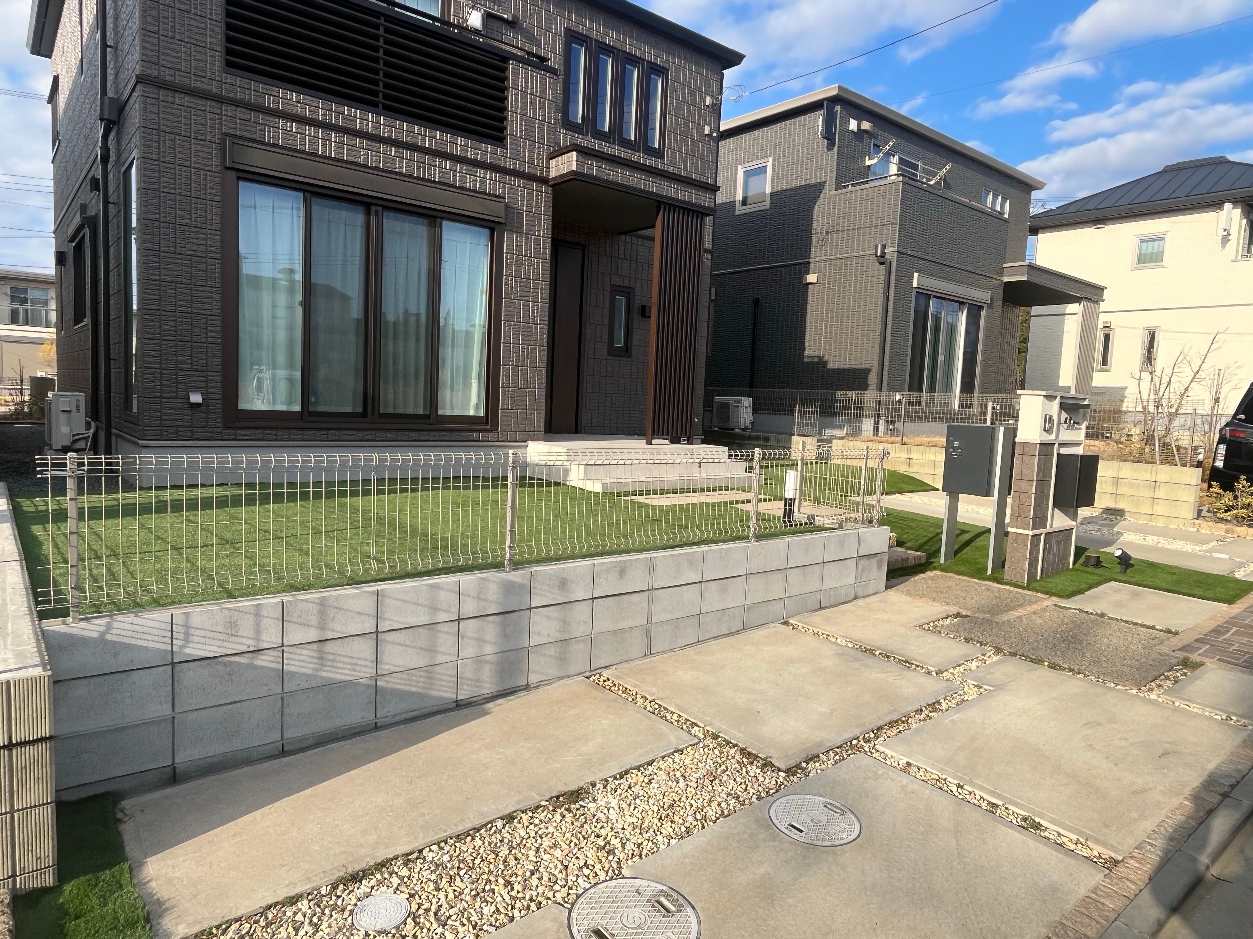 茨城県つくば市外構工事、人工芝の施工致しました。ブロック3〜4段 フェンス人工芝 リアリーターフ 40mmお客様に満足頂ける様、頑張って施工致します。お気軽にお声掛けください。
