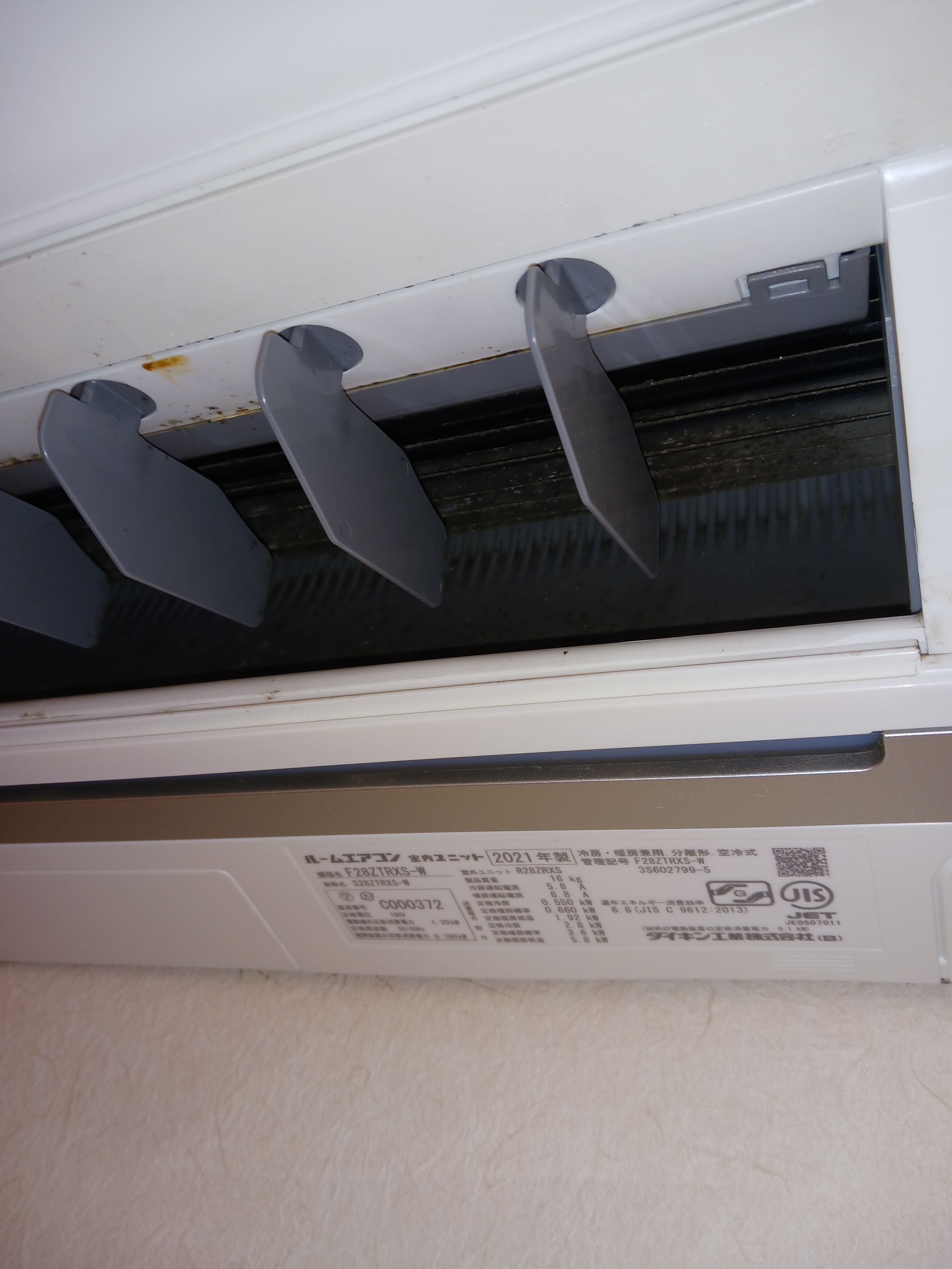 店舗のイートインスペースのエアコン掃除です。お客様に汚れが見えたら困りますよね。見えないアルミフィンも綺麗します。