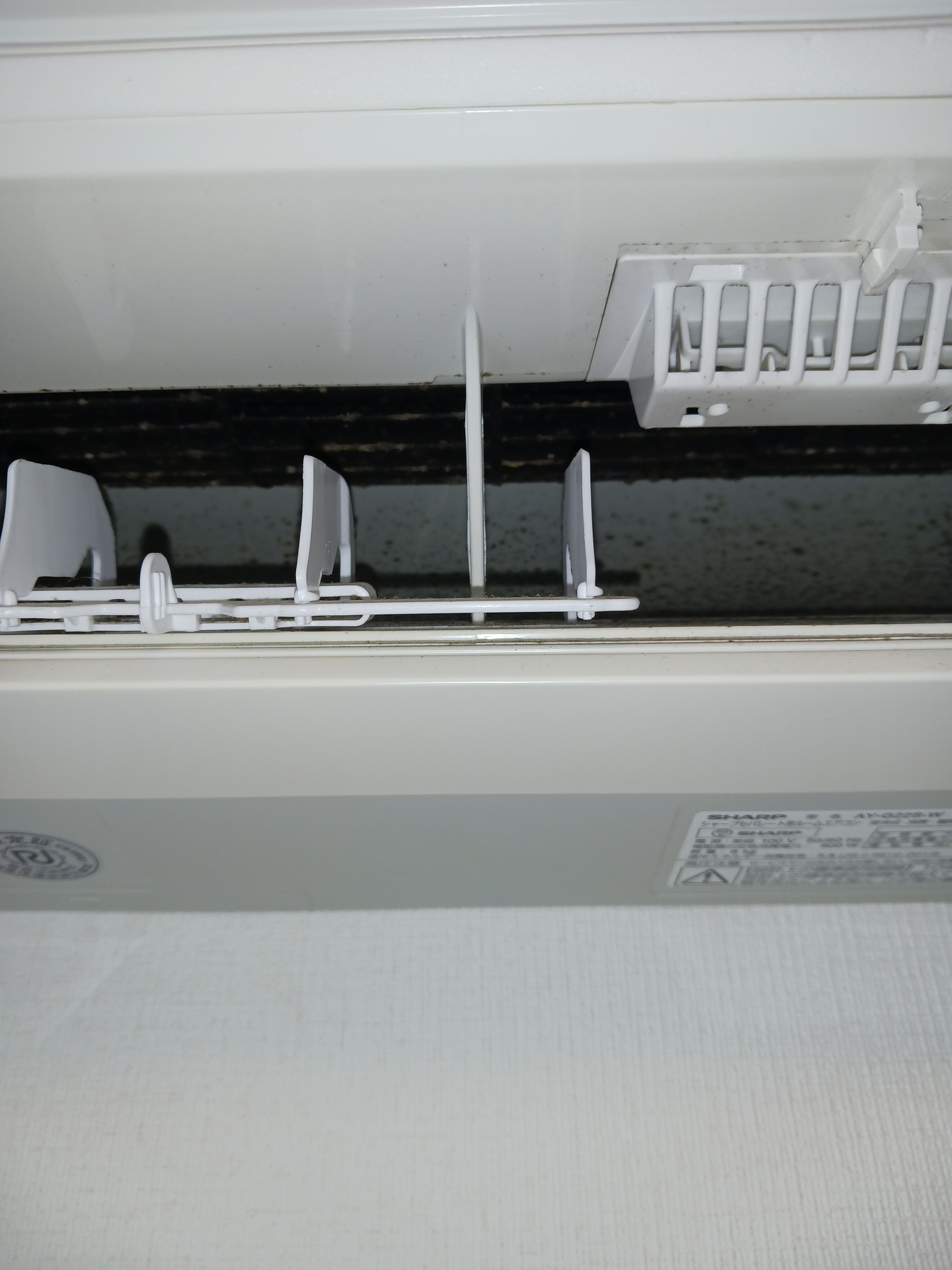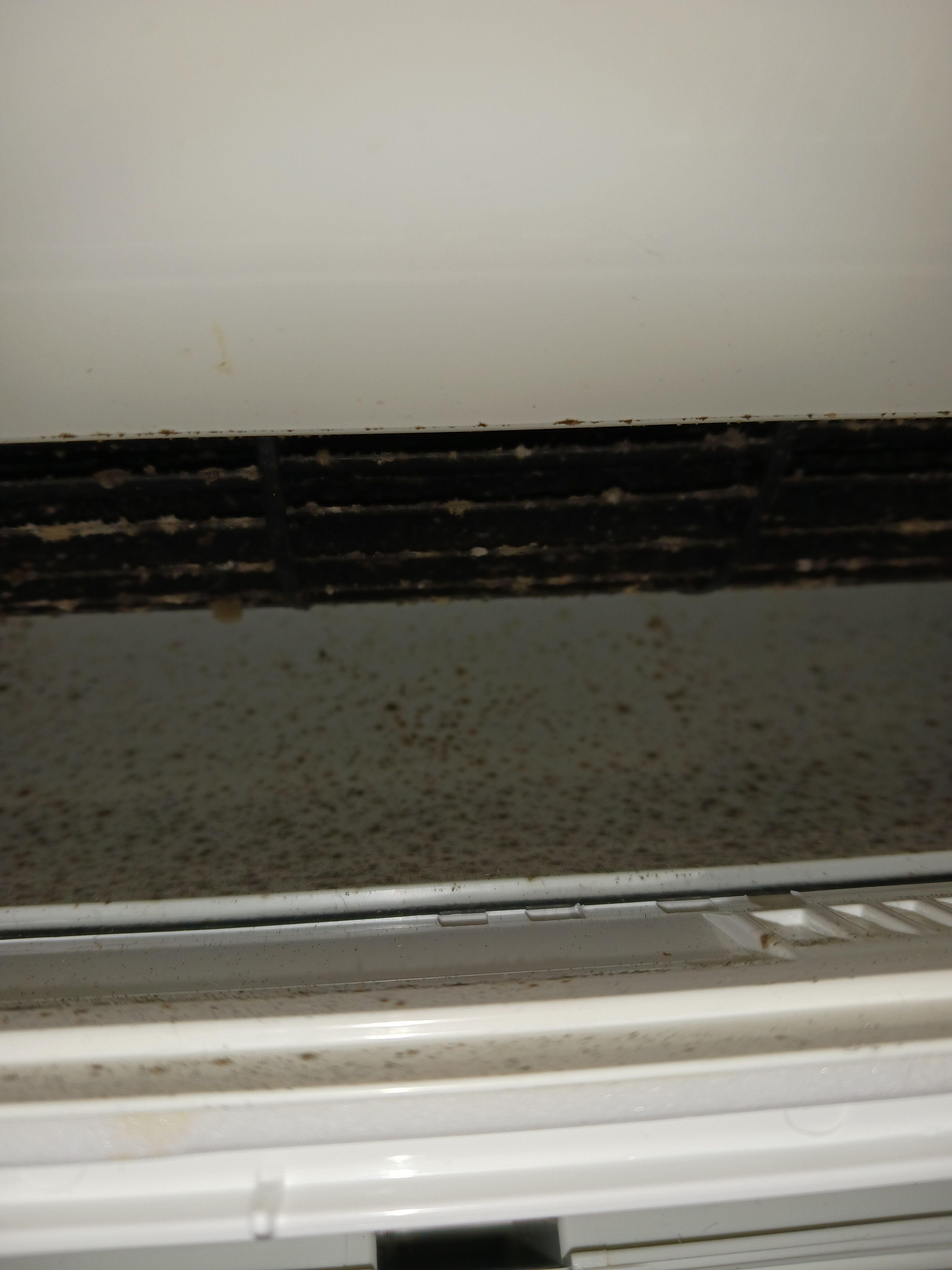 お子様のお部屋のエアコンです。吹き出し口から覗いてみてください。黒い奴らが悪さします。
