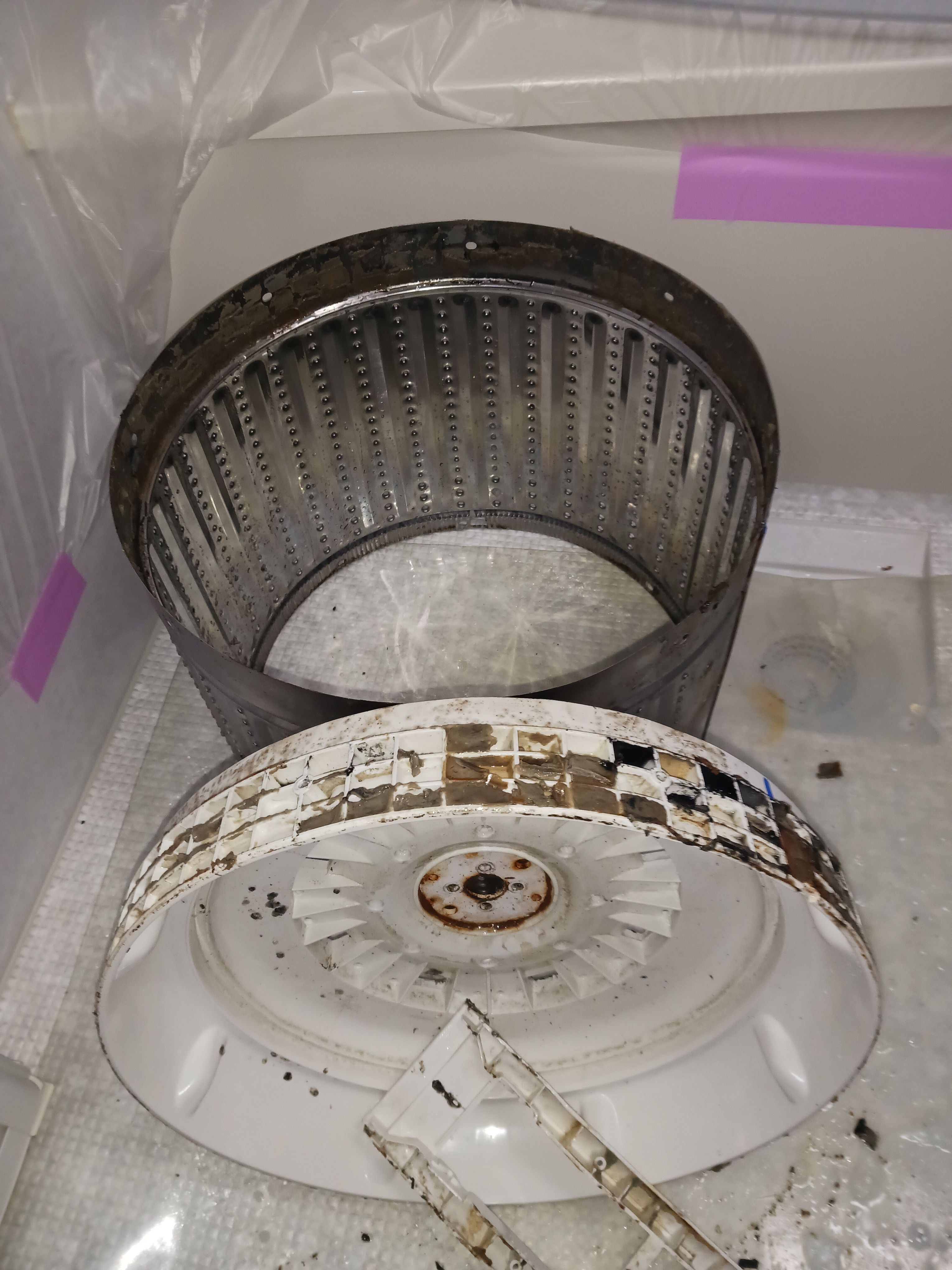 分解しないと汚れ具合は分かりません。洗濯物にかつおぶしやワカメが着いたりしたら汚れています。