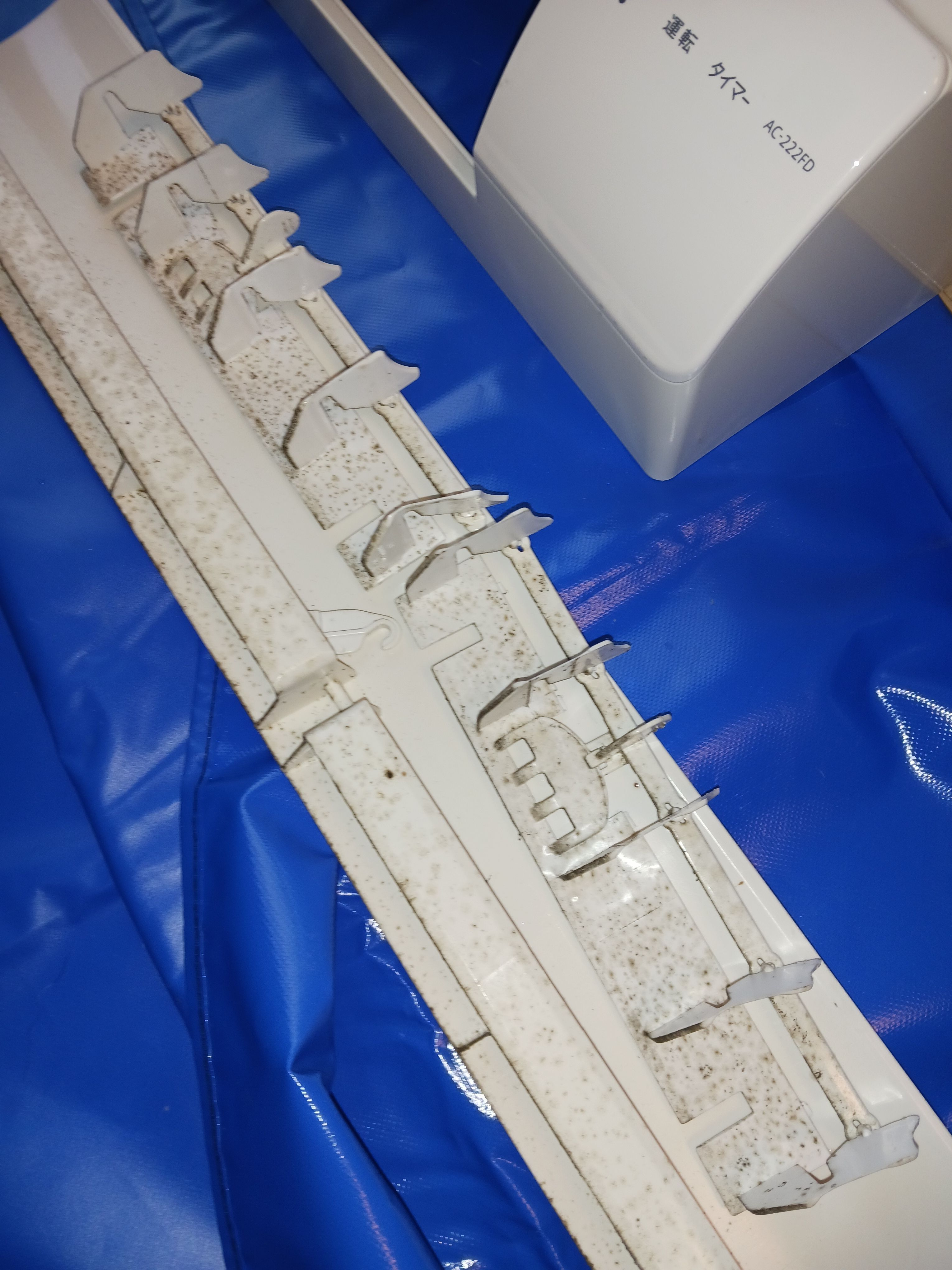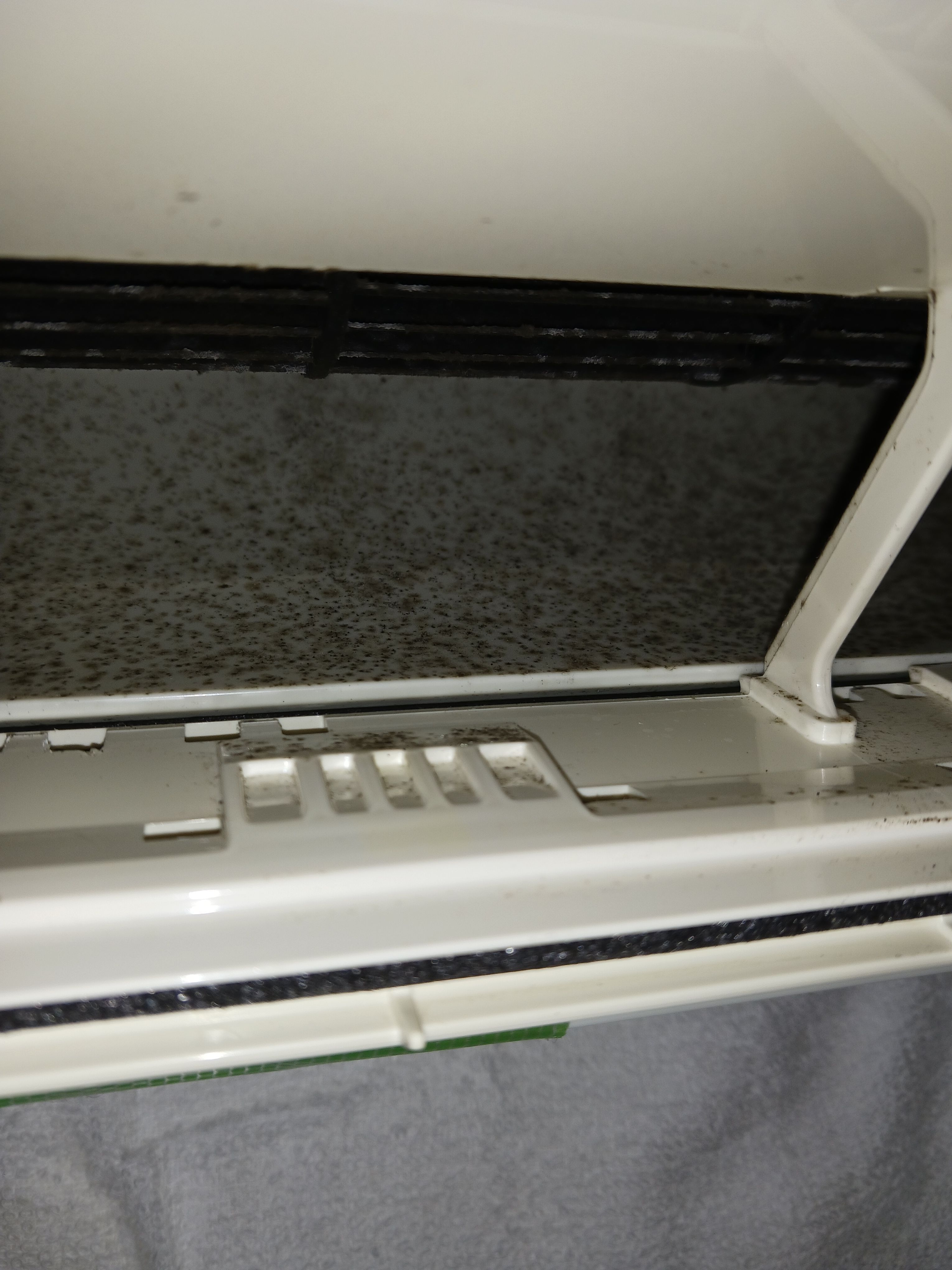 吹き出し口から、黒いカスが飛んできているとのことでした。カビです。まさしくカビです。綺麗に落とします。