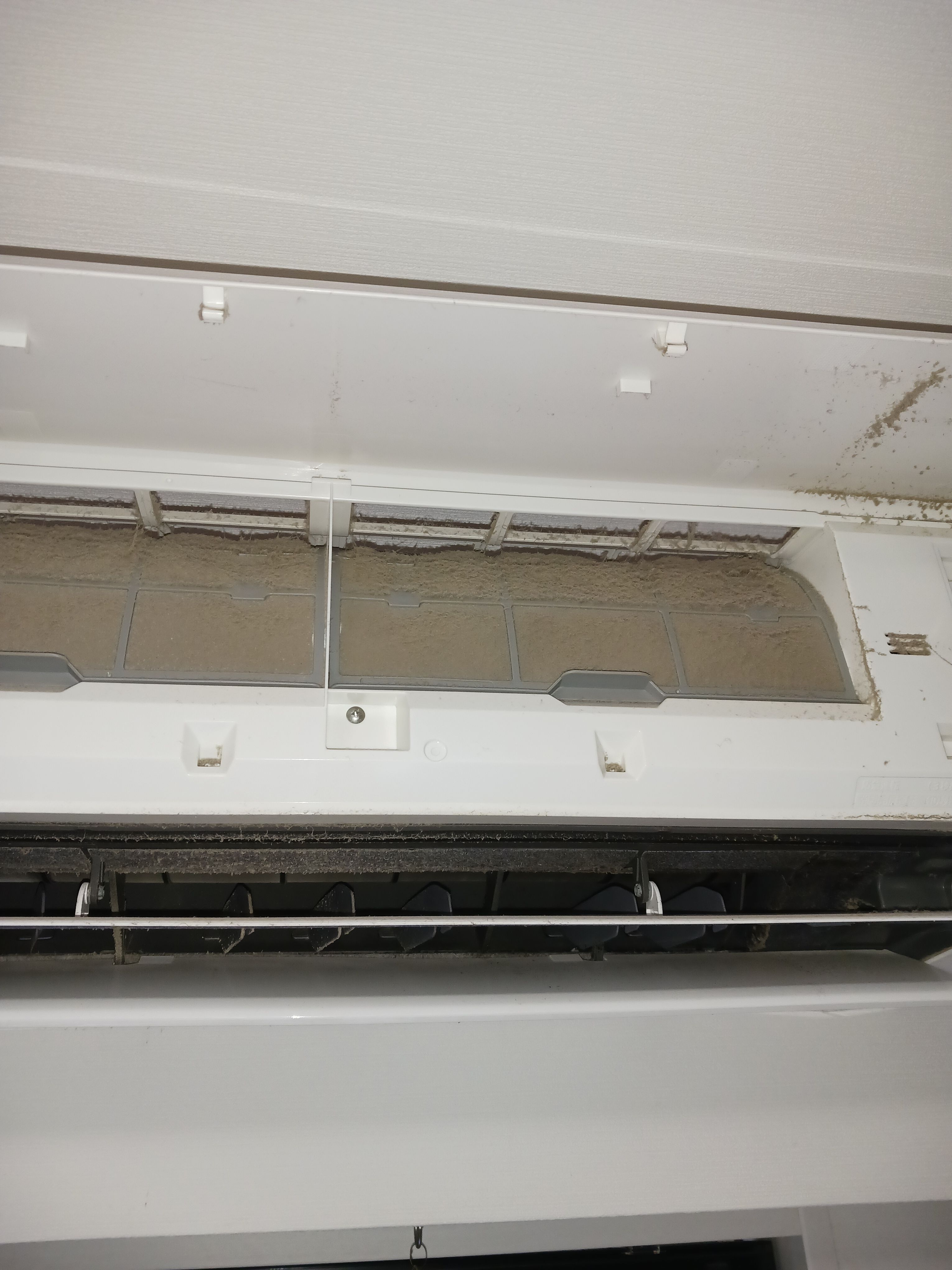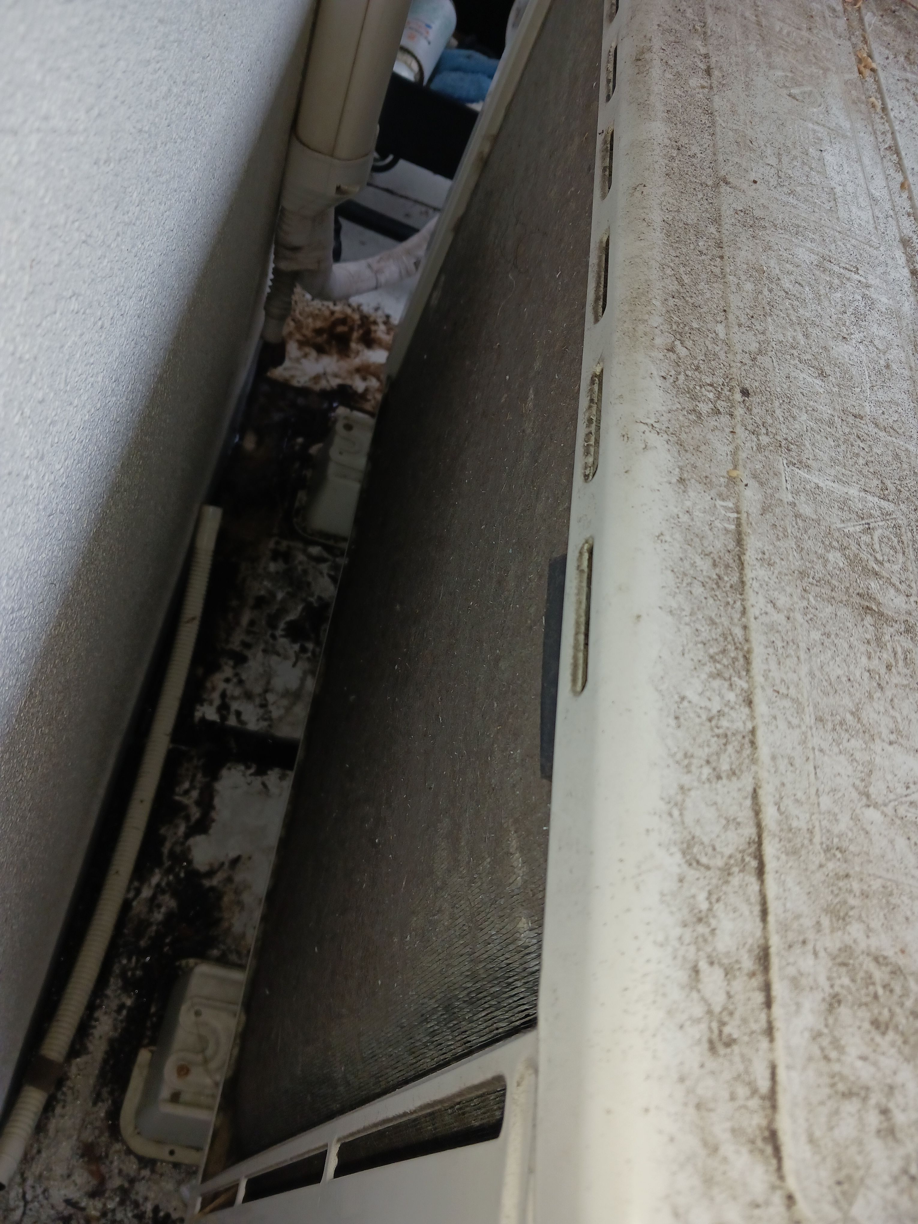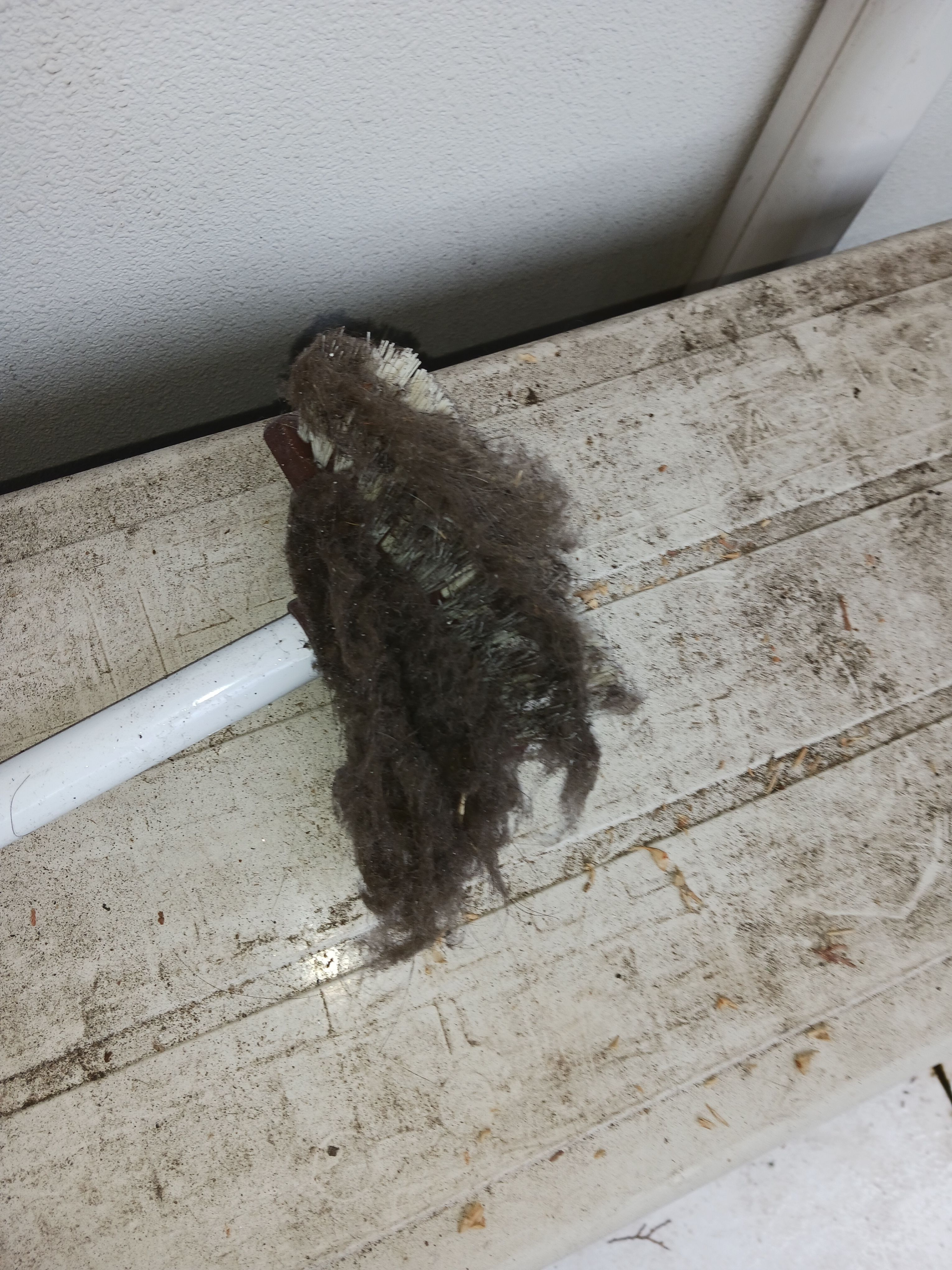 室外機を見てみてください。ワンちゃんの毛がごっそり取れました。