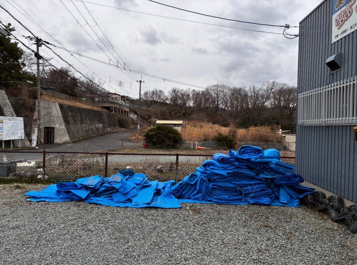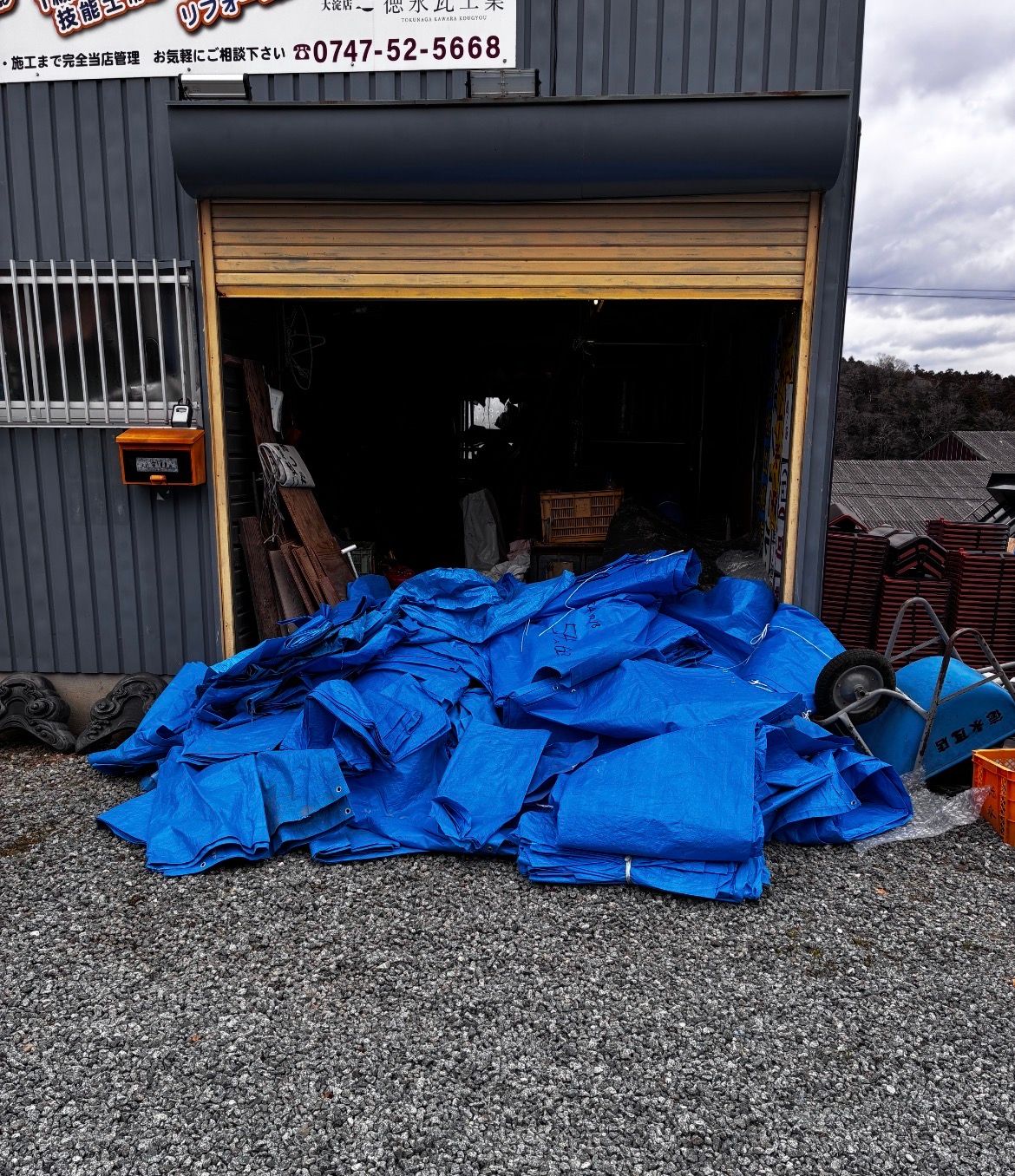 一度使用したブルーシートはその都度処分していたつもりが 倉庫大掃除していたら奥の方にまだこんなにもあり びっくりしました。