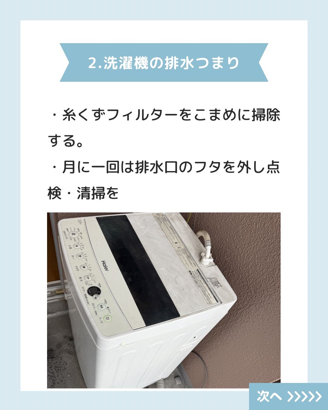 ✅ 洗濯排水の詰まり → 糸くずフィルターの掃除をこまめに