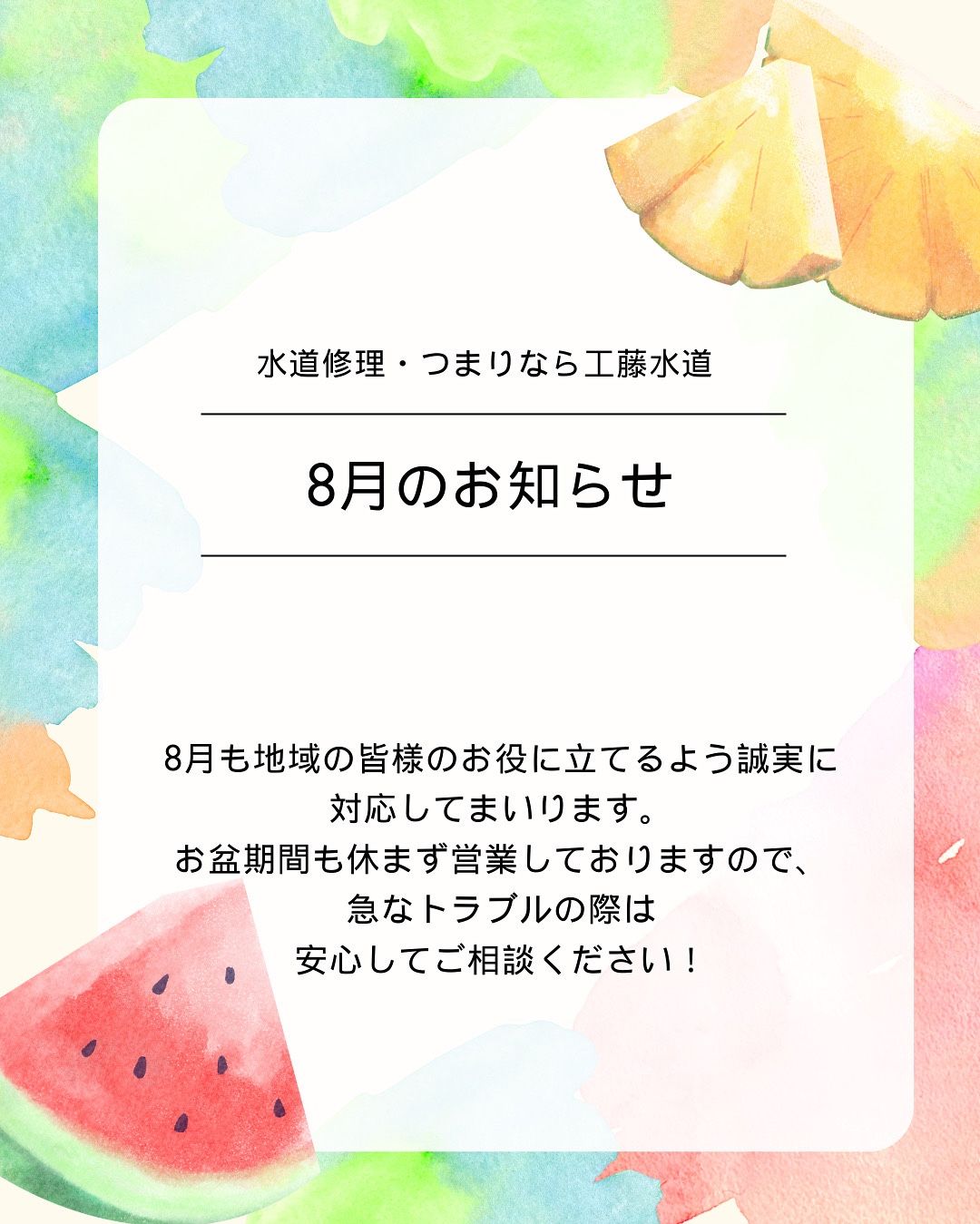 8月も【工藤水道】をどうぞよろしくお願いいたします!