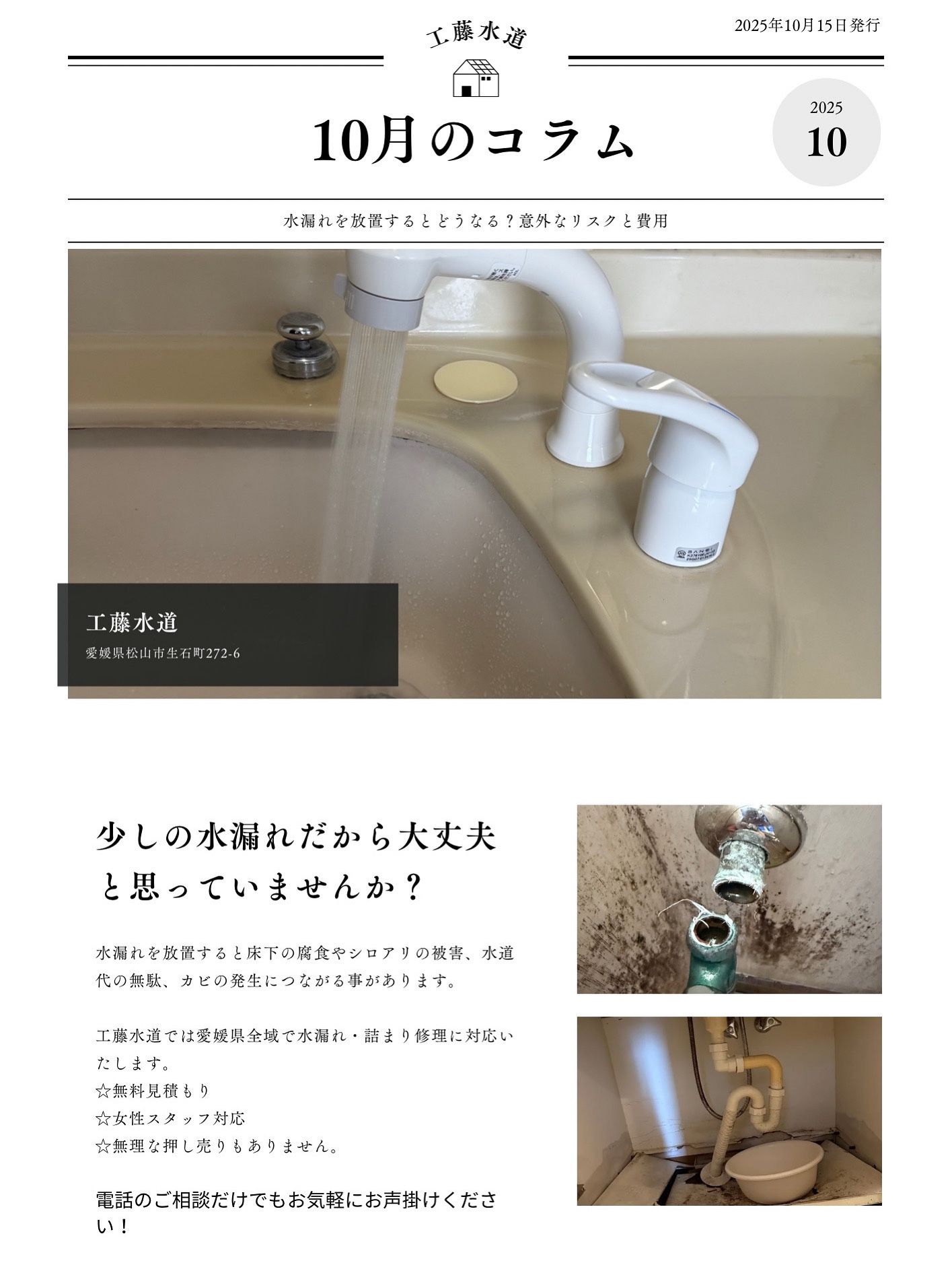 工藤水道では、松山市・今治市を中心に愛媛全域で水漏れ修理・漏水調査に対応!