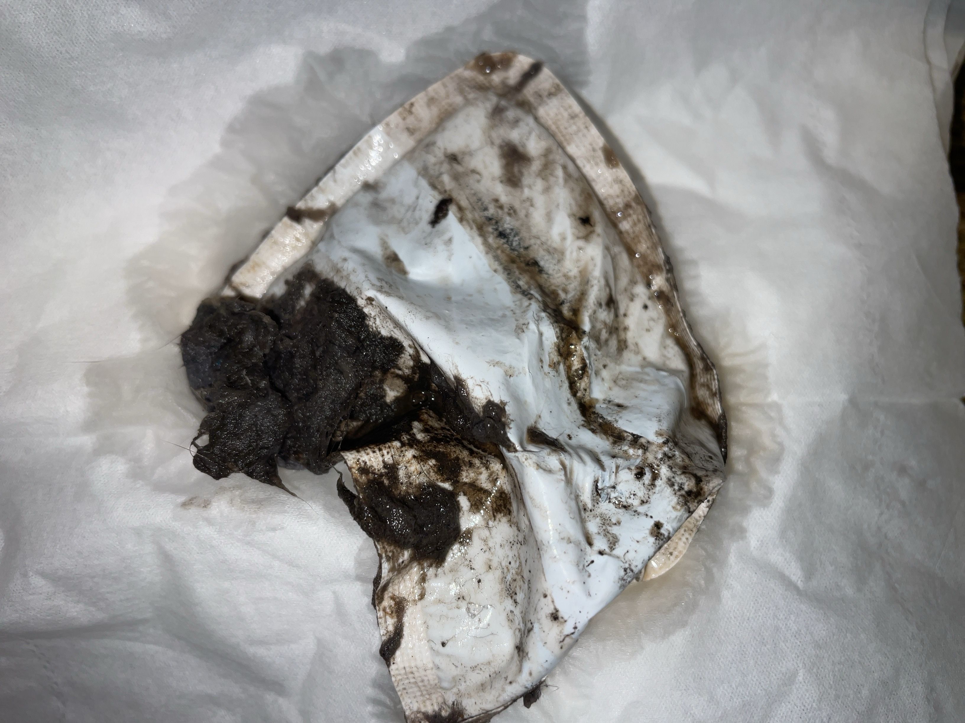貼るホッカイロが詰まっていました。冬に洗濯した衣類から剥がれて、洗濯機の中で潜伏して、今回、詰まってしまったようです!