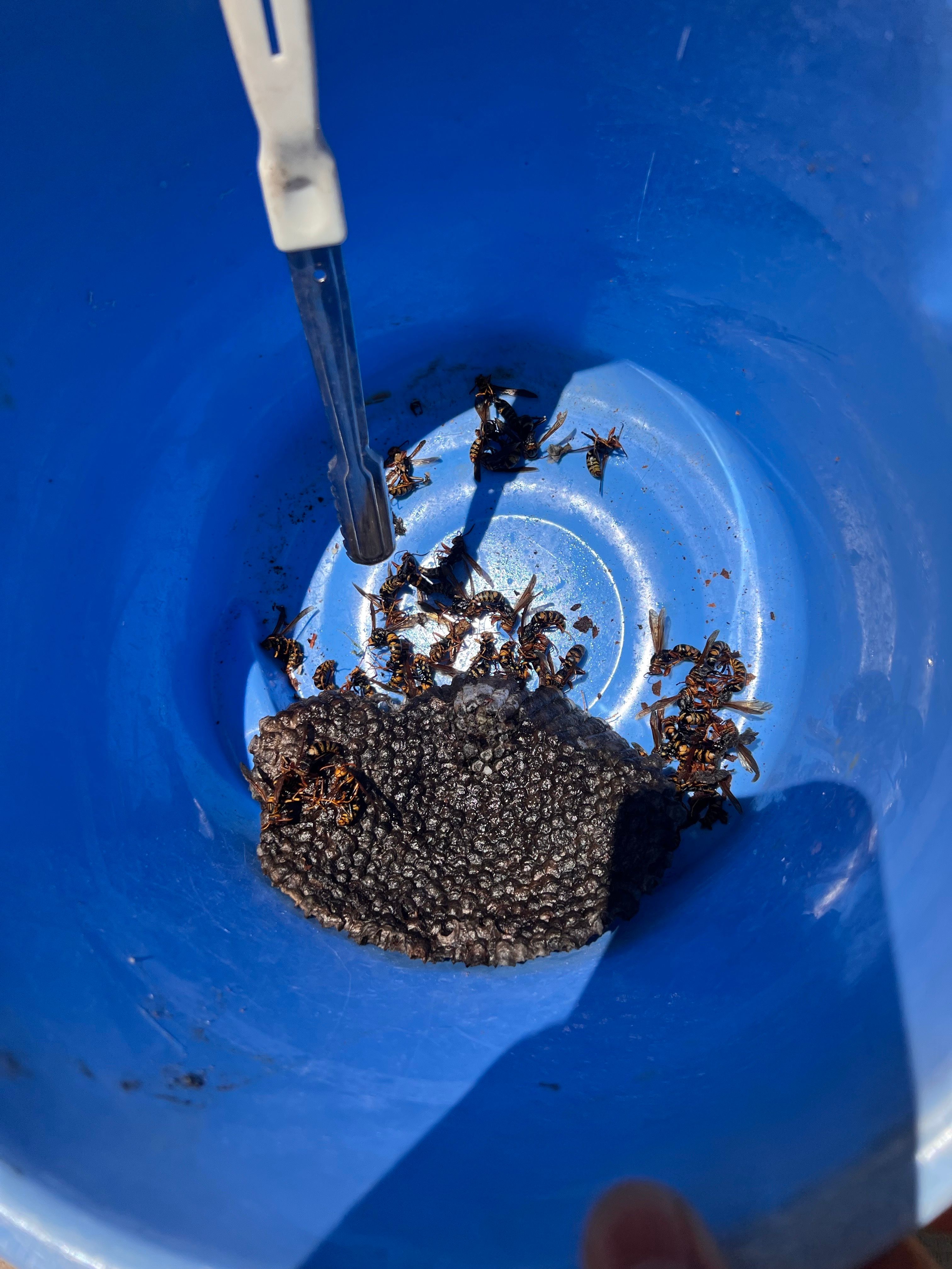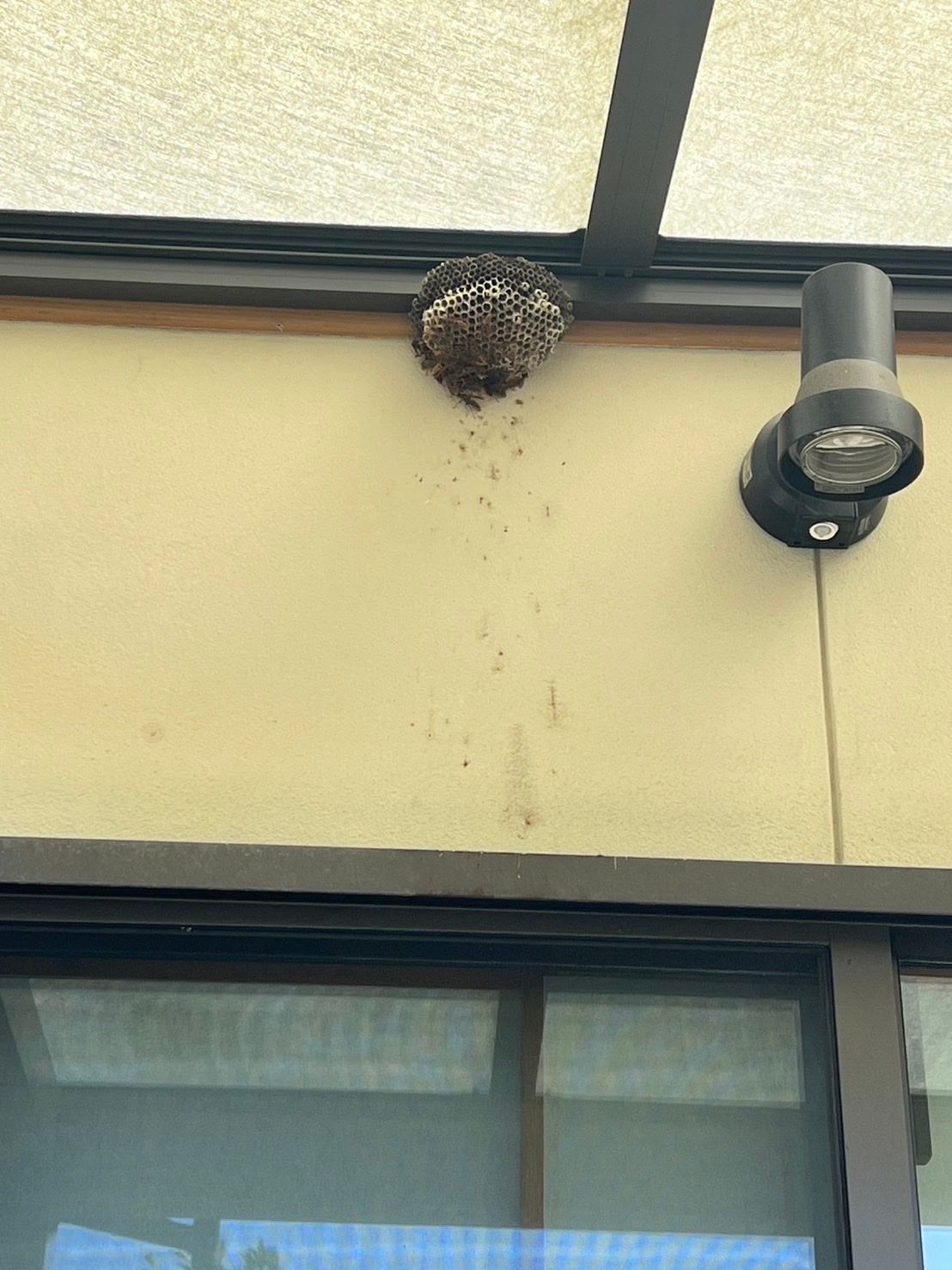 今回は大きくなりすぎて危険になったアシナガバチの巣を駆除しました✨家主さまの希望で壁塗料を傷つけずにキレイに洗浄して巣の跡がのこらないように除去しました!本日はありがとうございました😊
