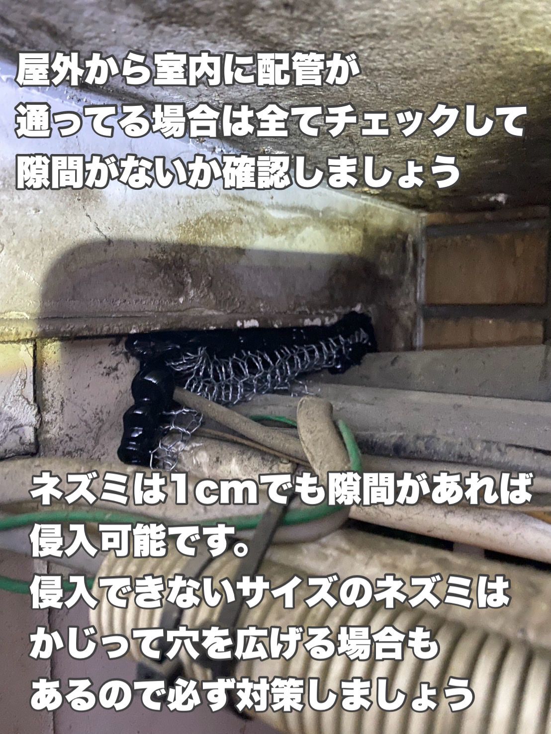 室内にしろ屋外にしろ穴という穴は塞ぐ必要がありますのでくまなく探して施行していきます✨