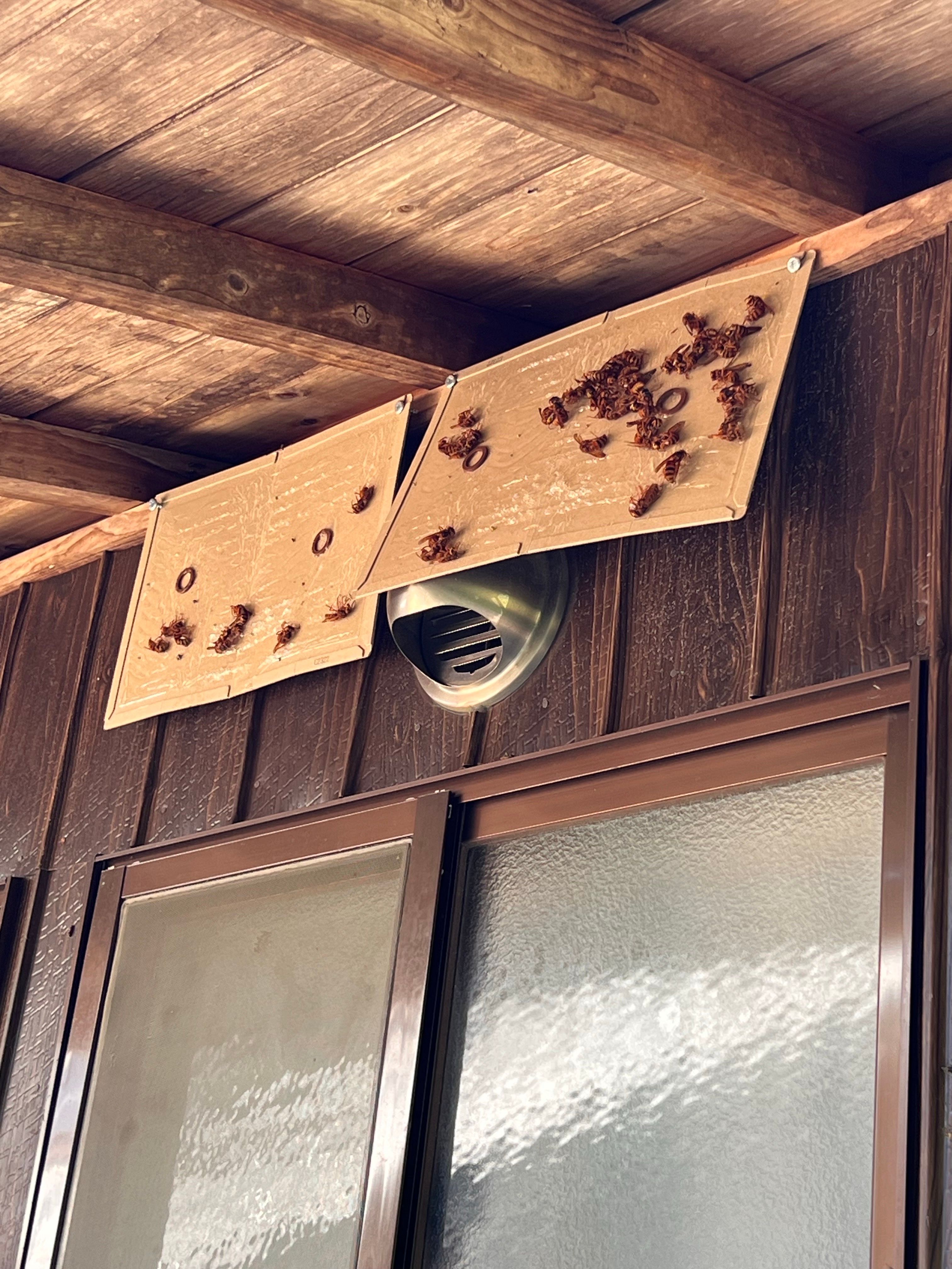 ※キイロスズメバチは切れるとめちゃくちゃ暴れるので静かに対応する必要があります。私たちが帰宅したあとは借り主さまが生活する場所なので自動トラップがオススメです。