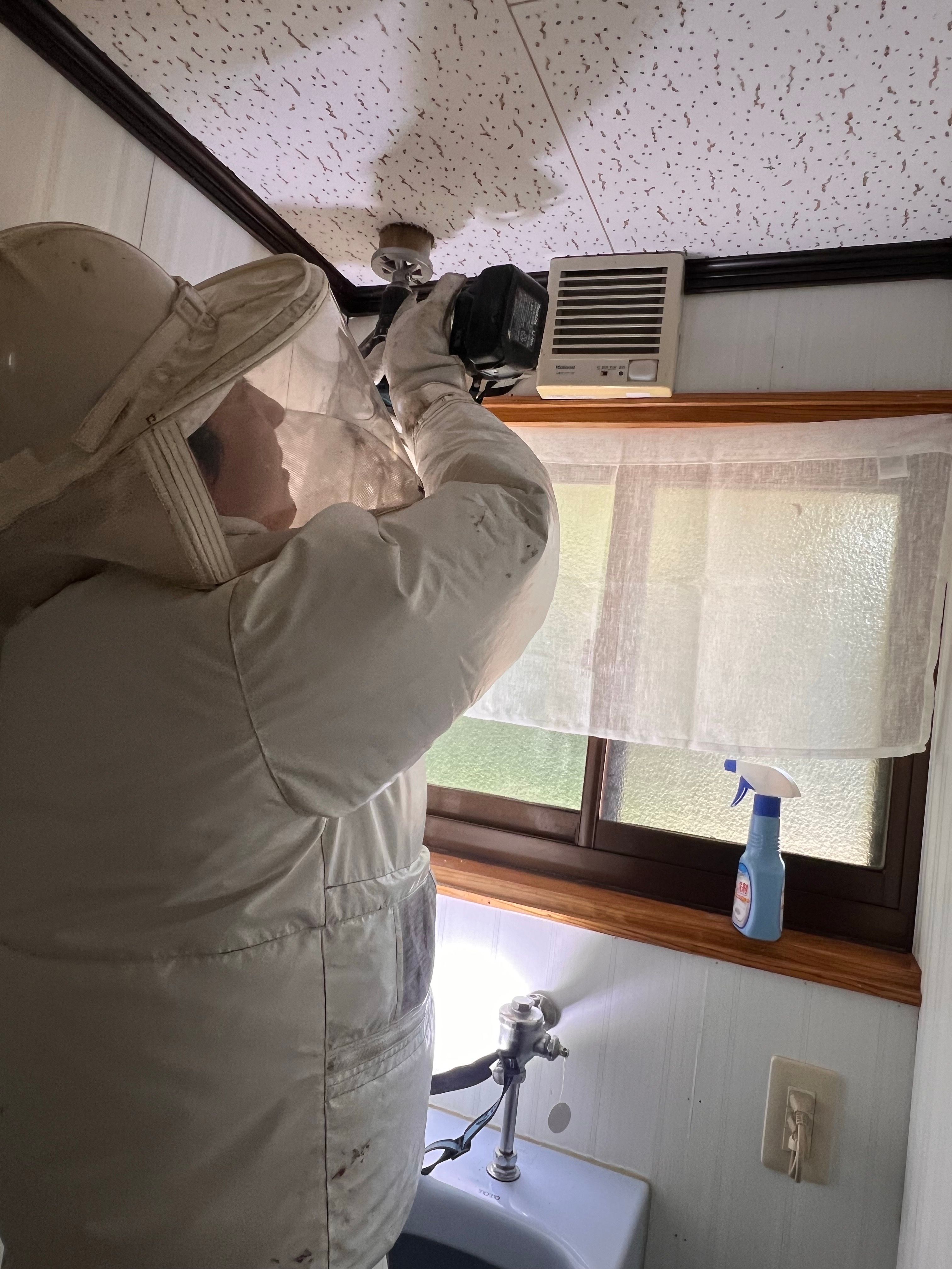 今回はトイレの天井あたりで天井板の交換ほどの規模ではないので穴あけ駆除のみとなりました。