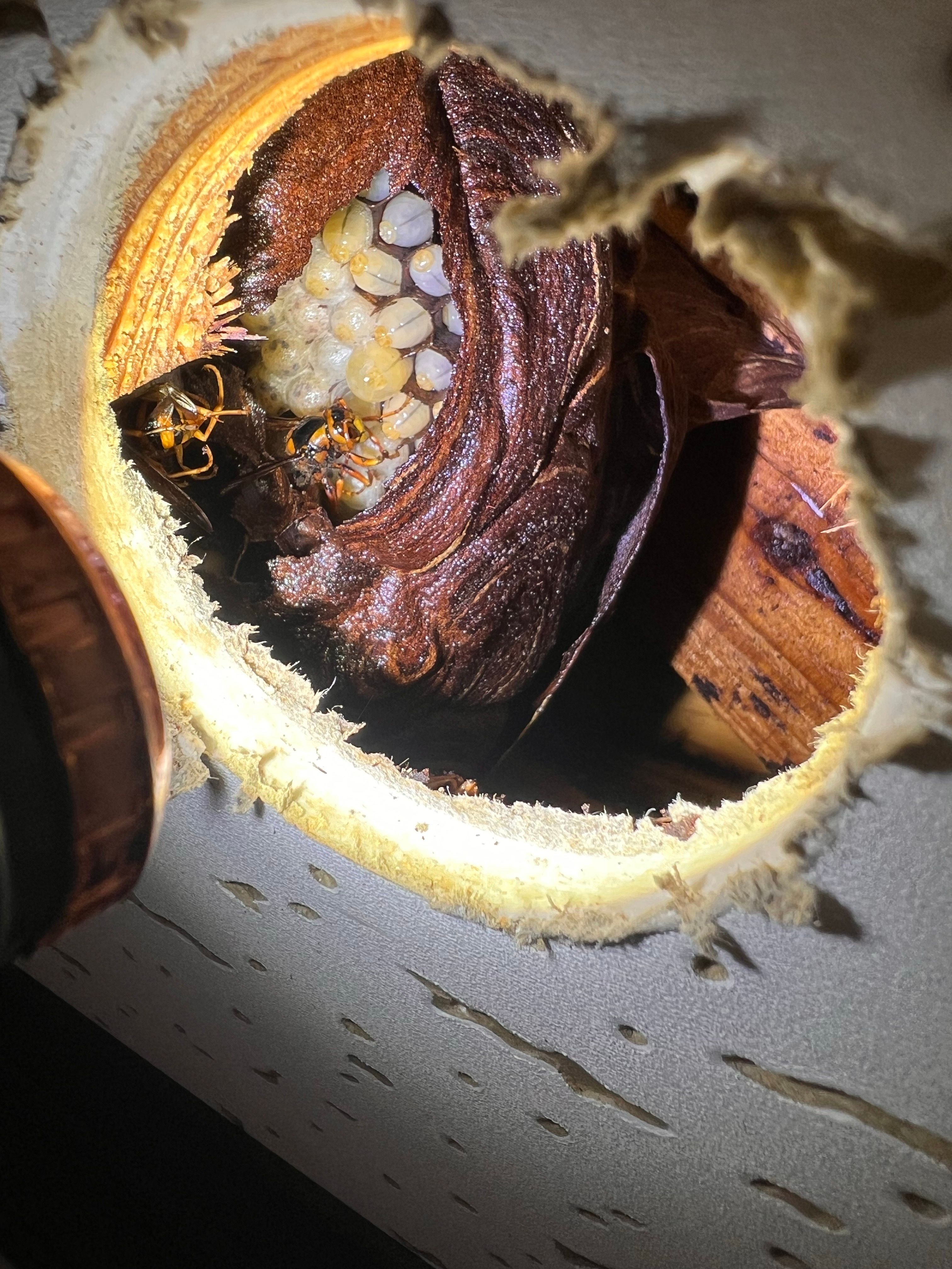 屋根裏に出来たキイロスズメバチ駆除の依頼を承りました✨