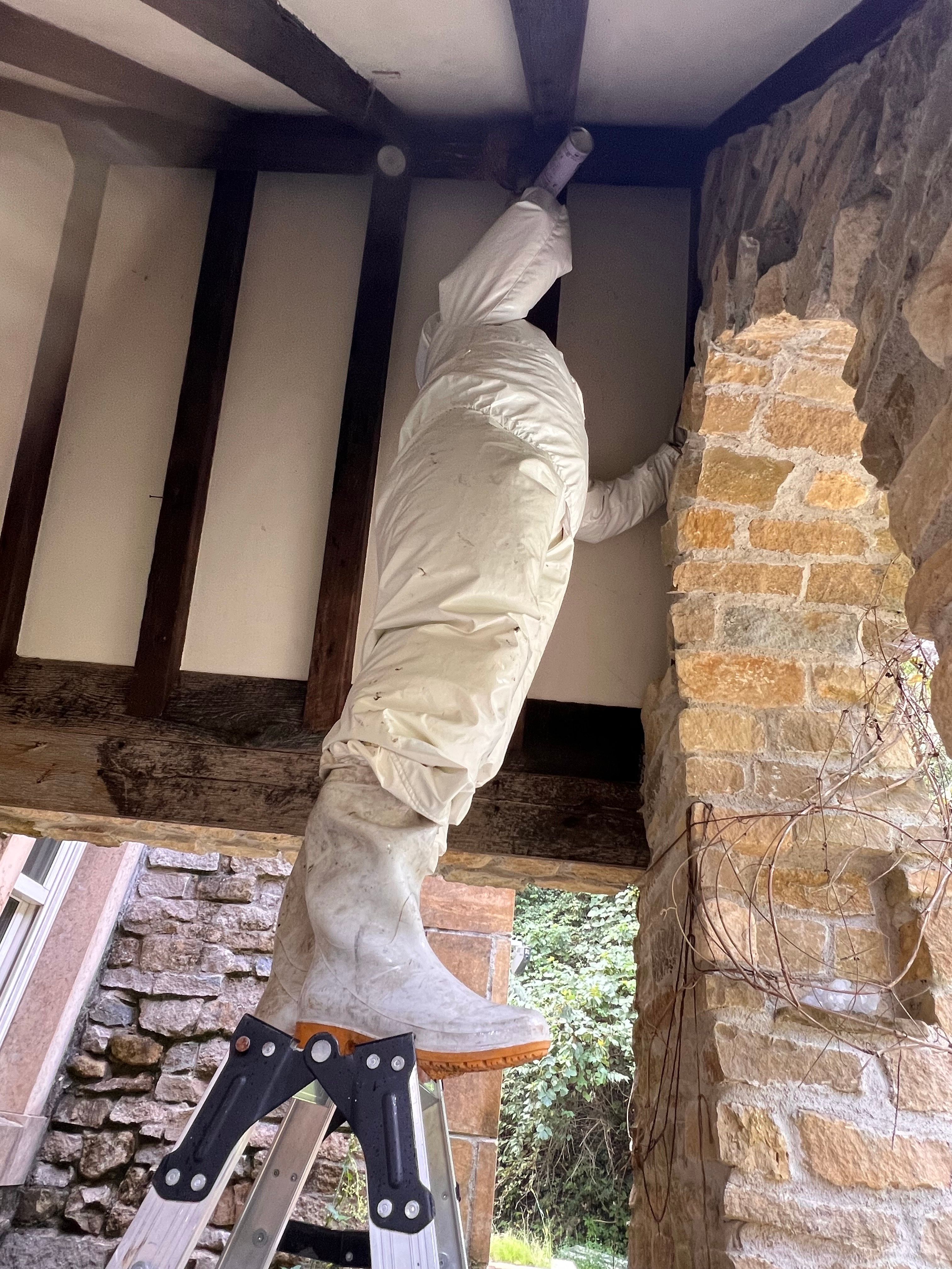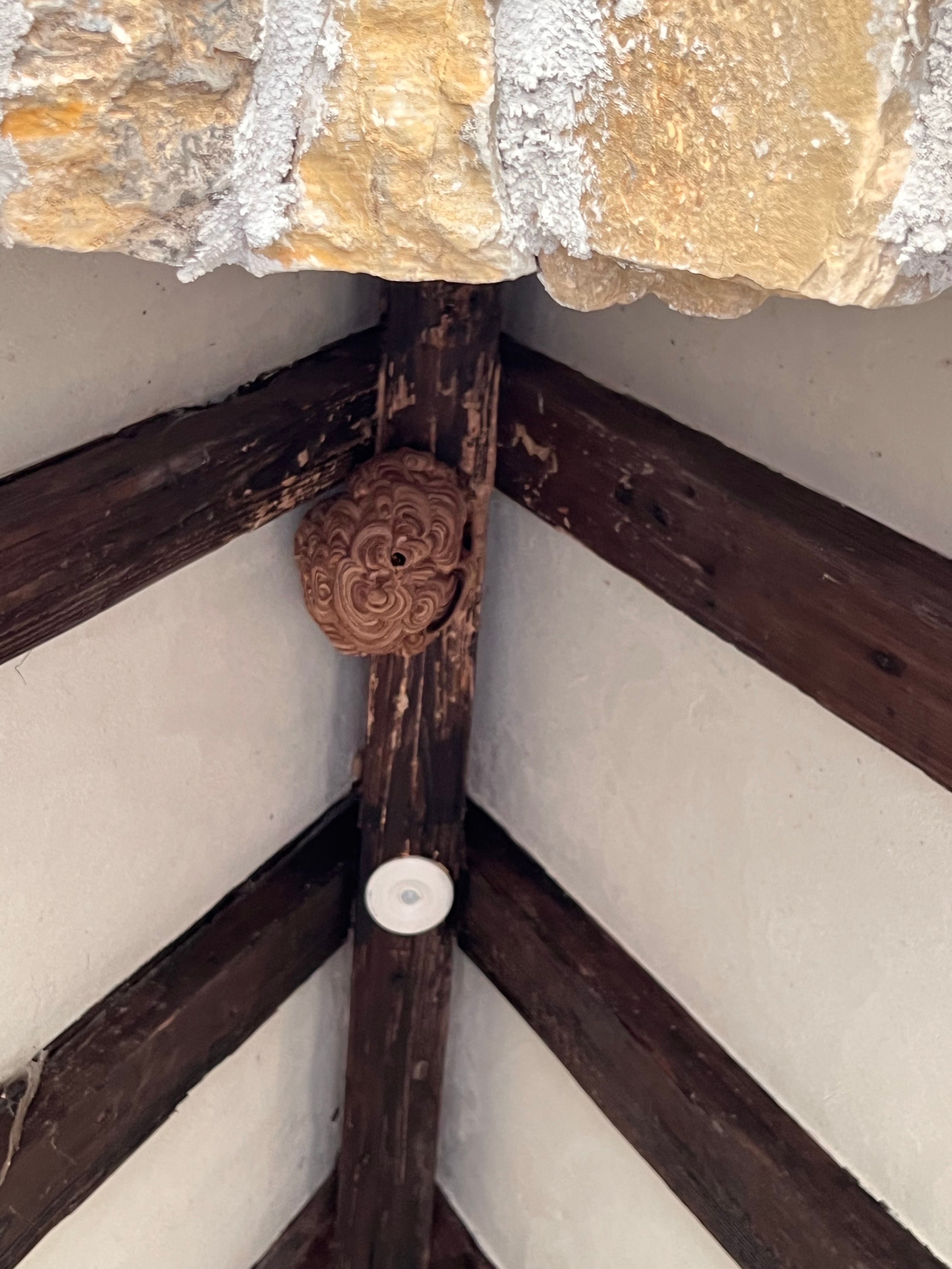 キイロスズメバチなので大量の戻りバチ発生中です!!念のため戻りバチトラップを設置して残りのハチ達も駆除することになりました。ありがとうございました✨