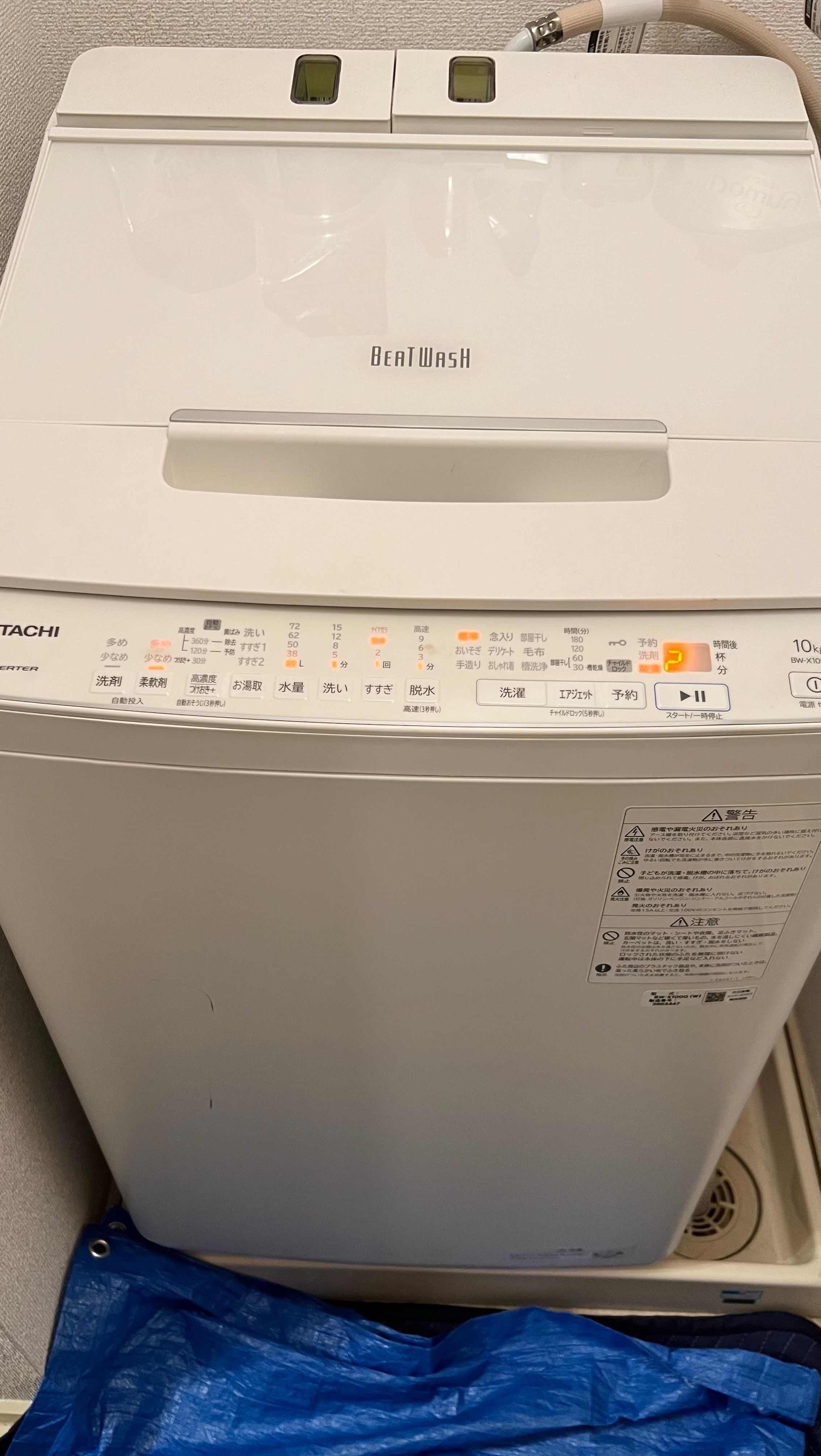 **日立ビートウォッシュBW-X100G(縦型洗濯機)**