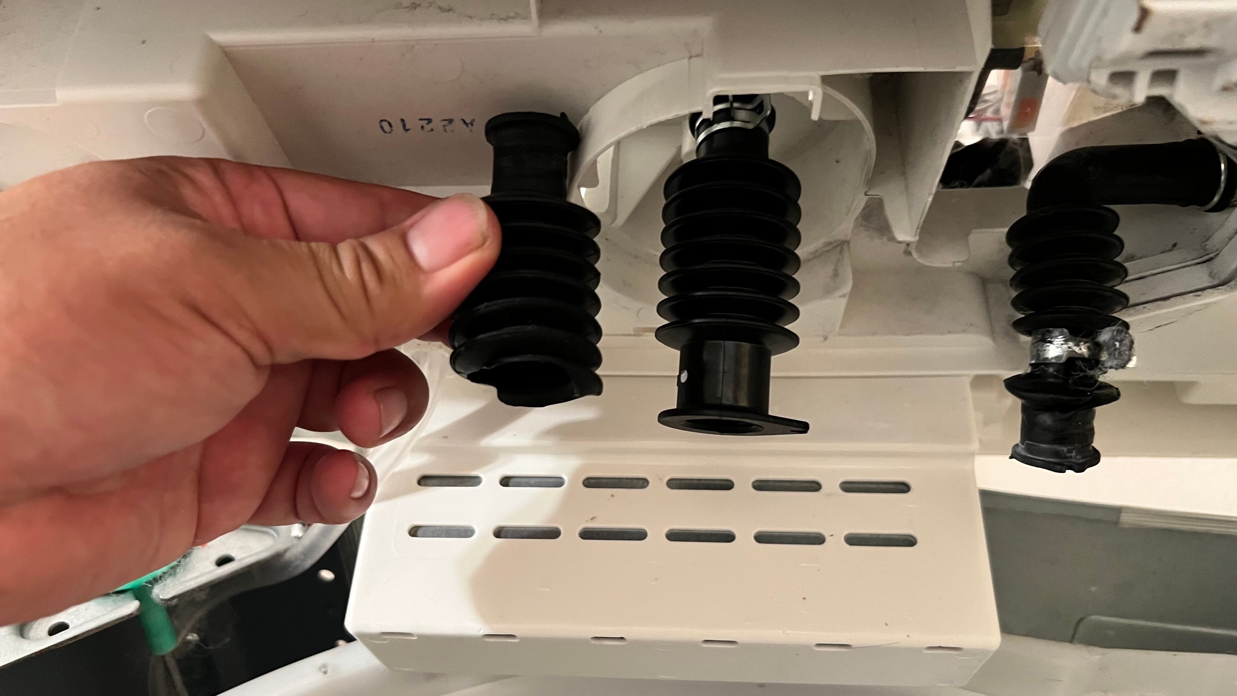 さらに、今回は給水ホースからの水漏れがあったため、新しいホースに交換修理を実施。