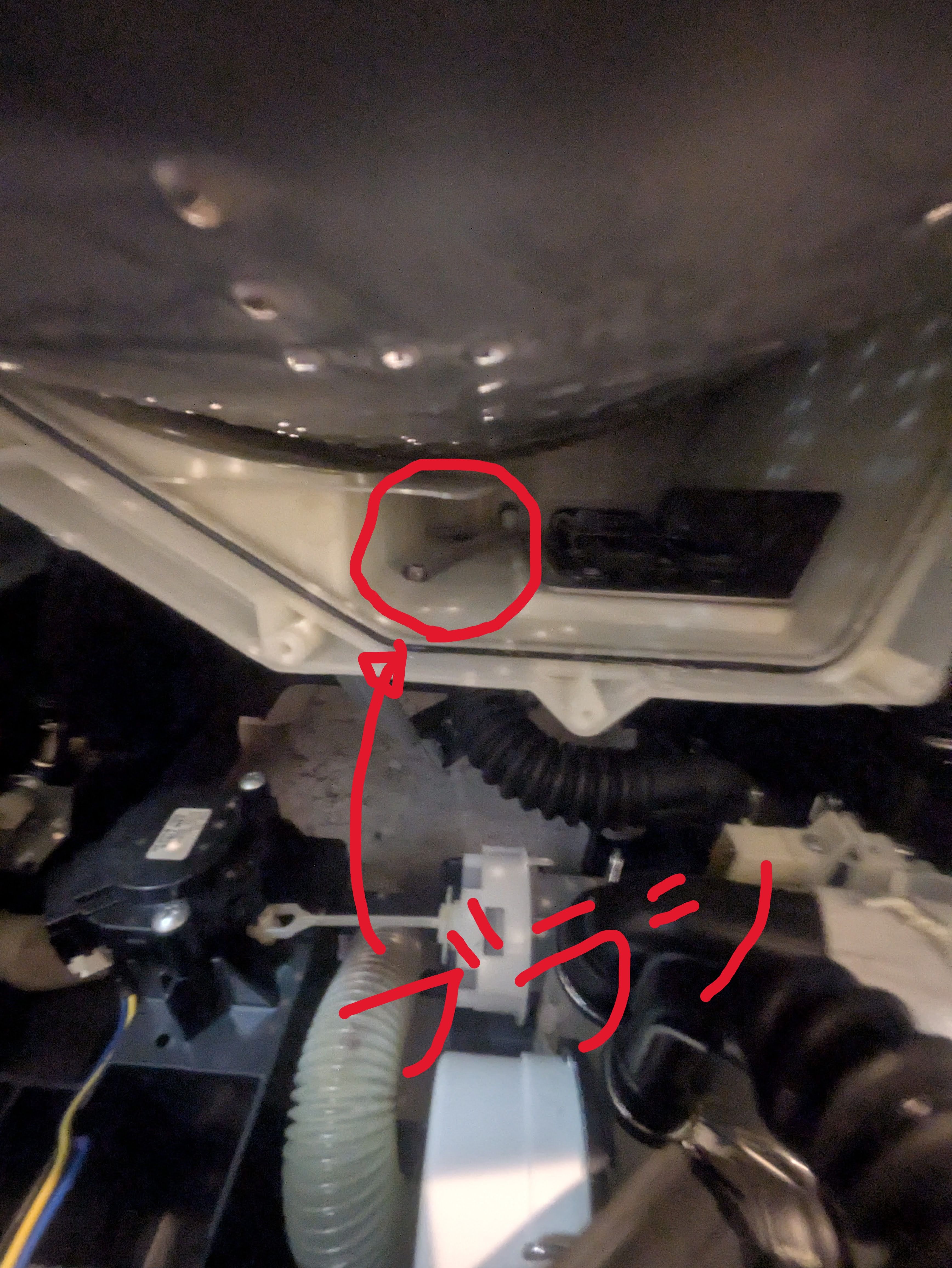 この位置にあることが多いのですが、落下した状態で洗濯などをかけてしまうと水が溜まってブラシがドラムとの間に挟まってエラーや修理が必要になることもありますので、