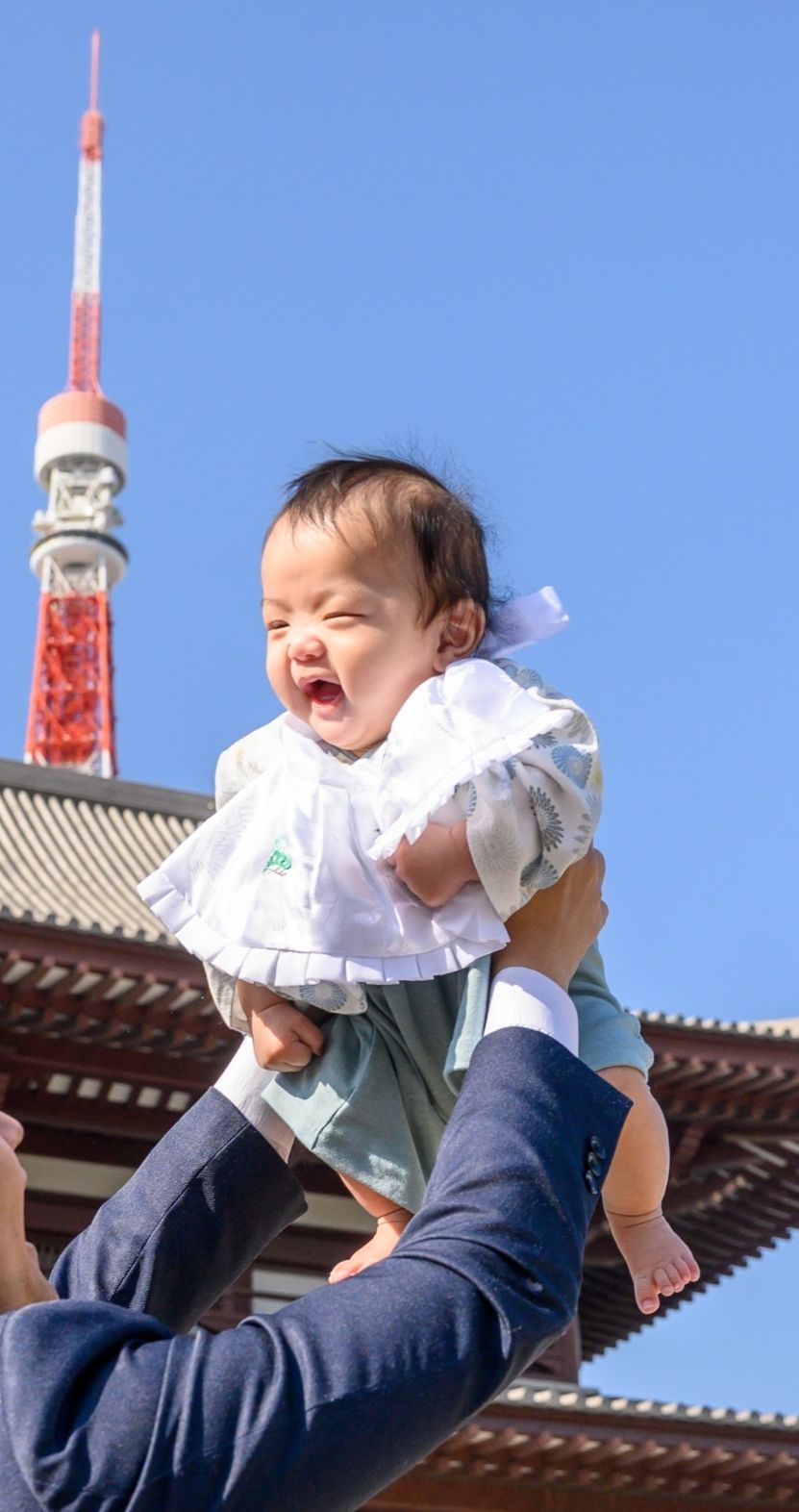 東京タワーが見える増上寺でのお宮参り撮影」