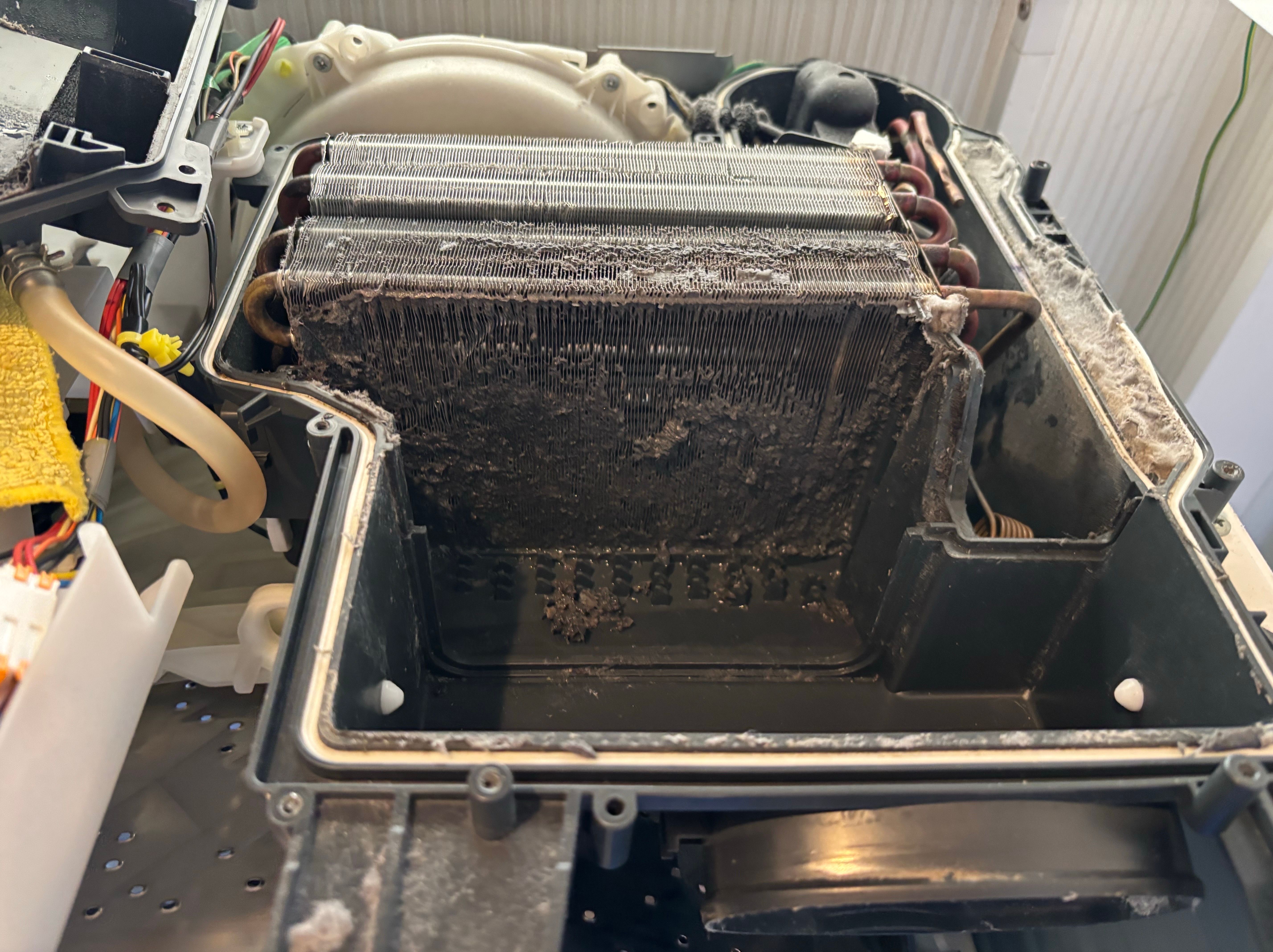 購入してから3年目ということでしたが、ヒートポンプとドラムにホコリと汚れが…(T-T)