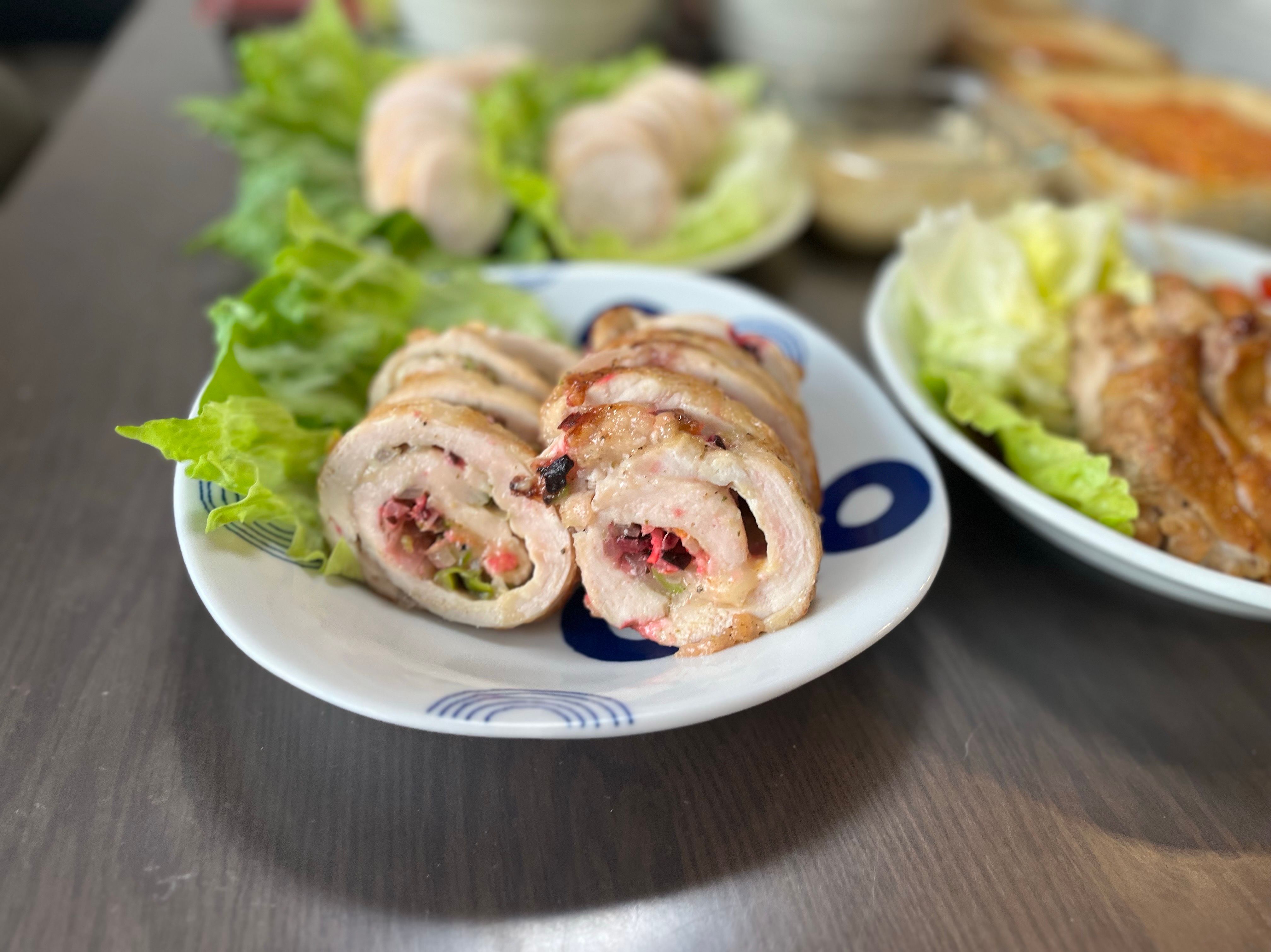 ✔️ 鶏むねのオリーブとしば漬けのチーズロール