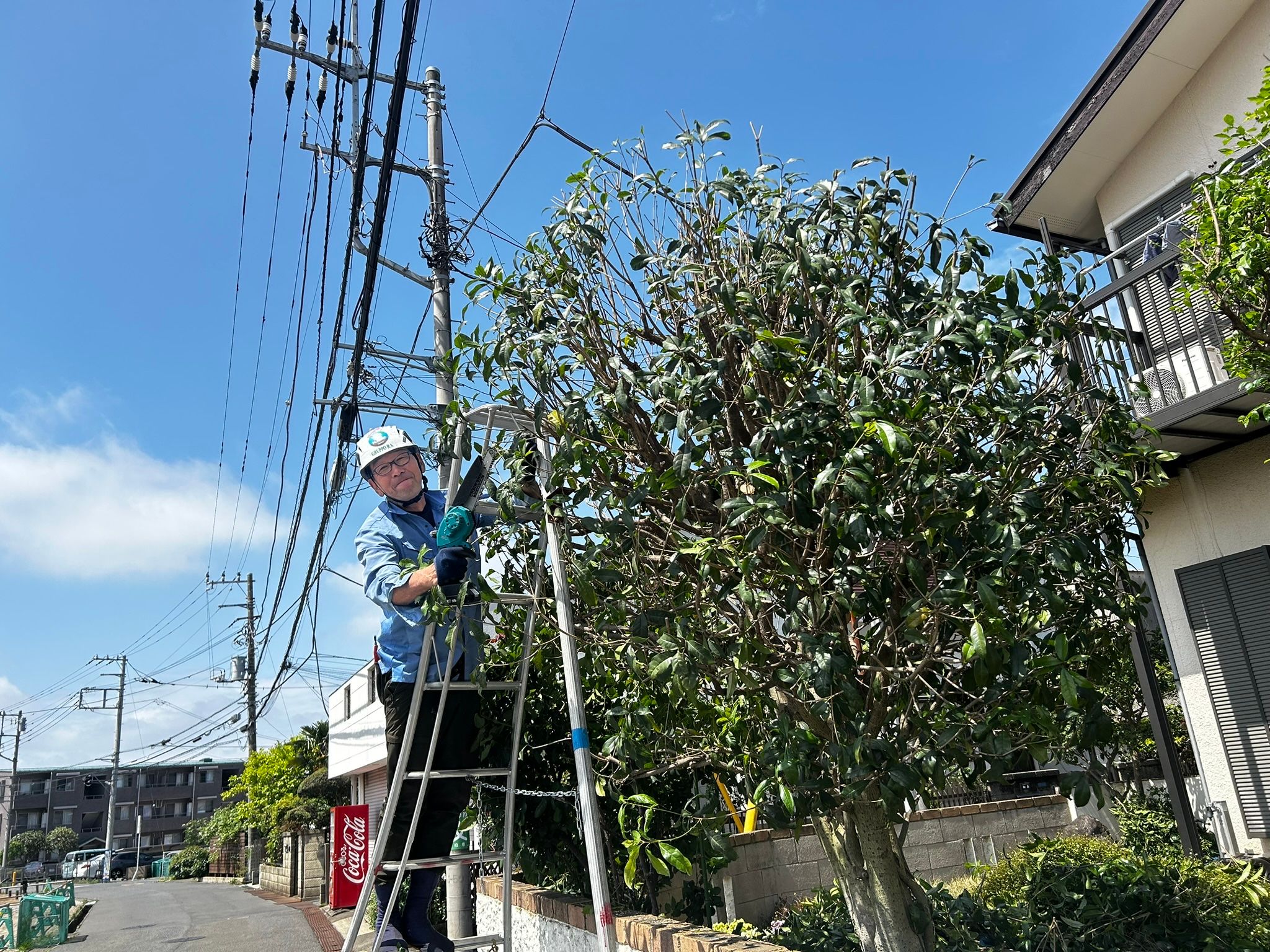 今回は素晴らしく成長した金木犀の剪定のお仕事です。