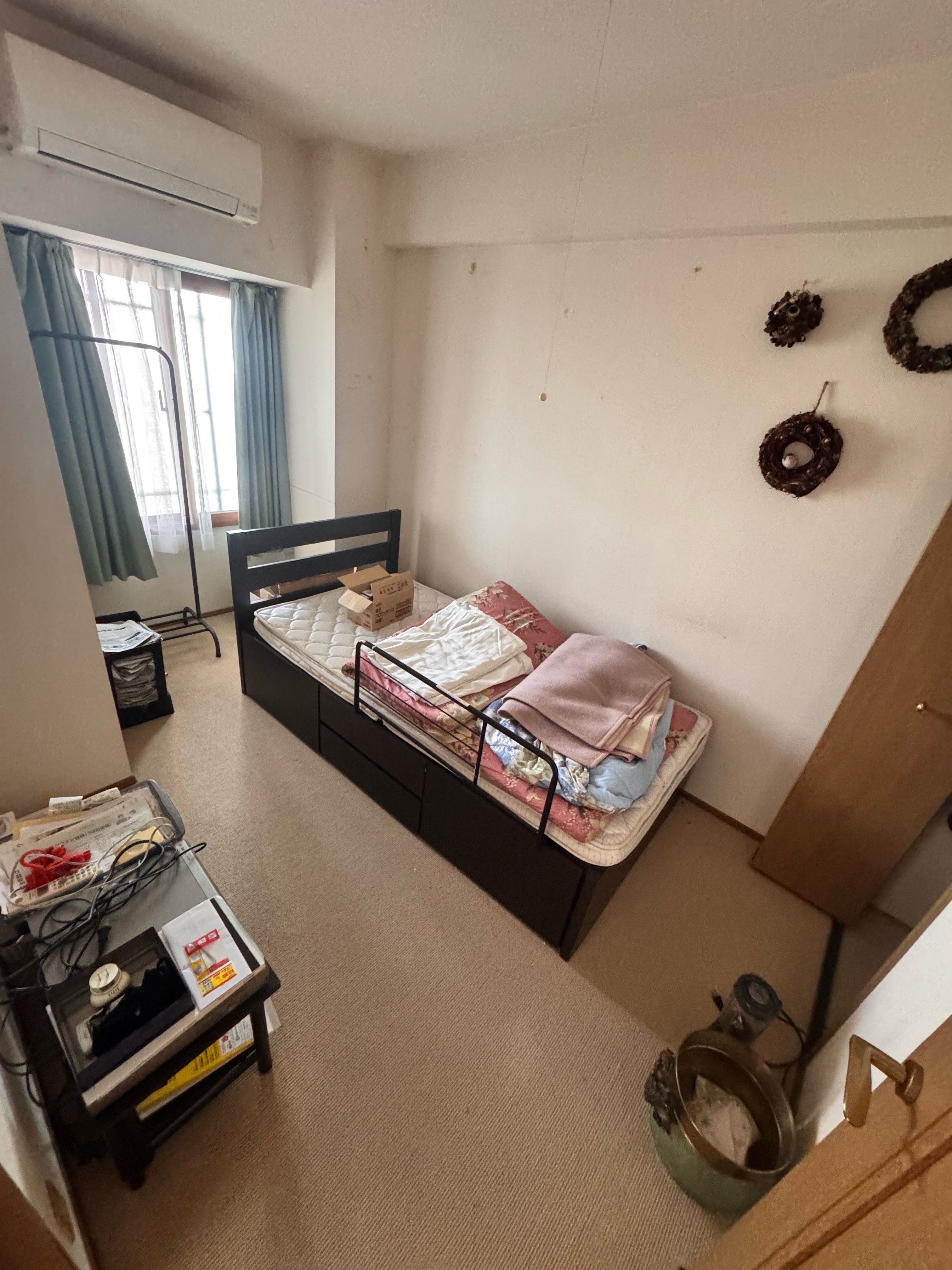 作業前は、ベッドや寝具、生活用品などが残っており、