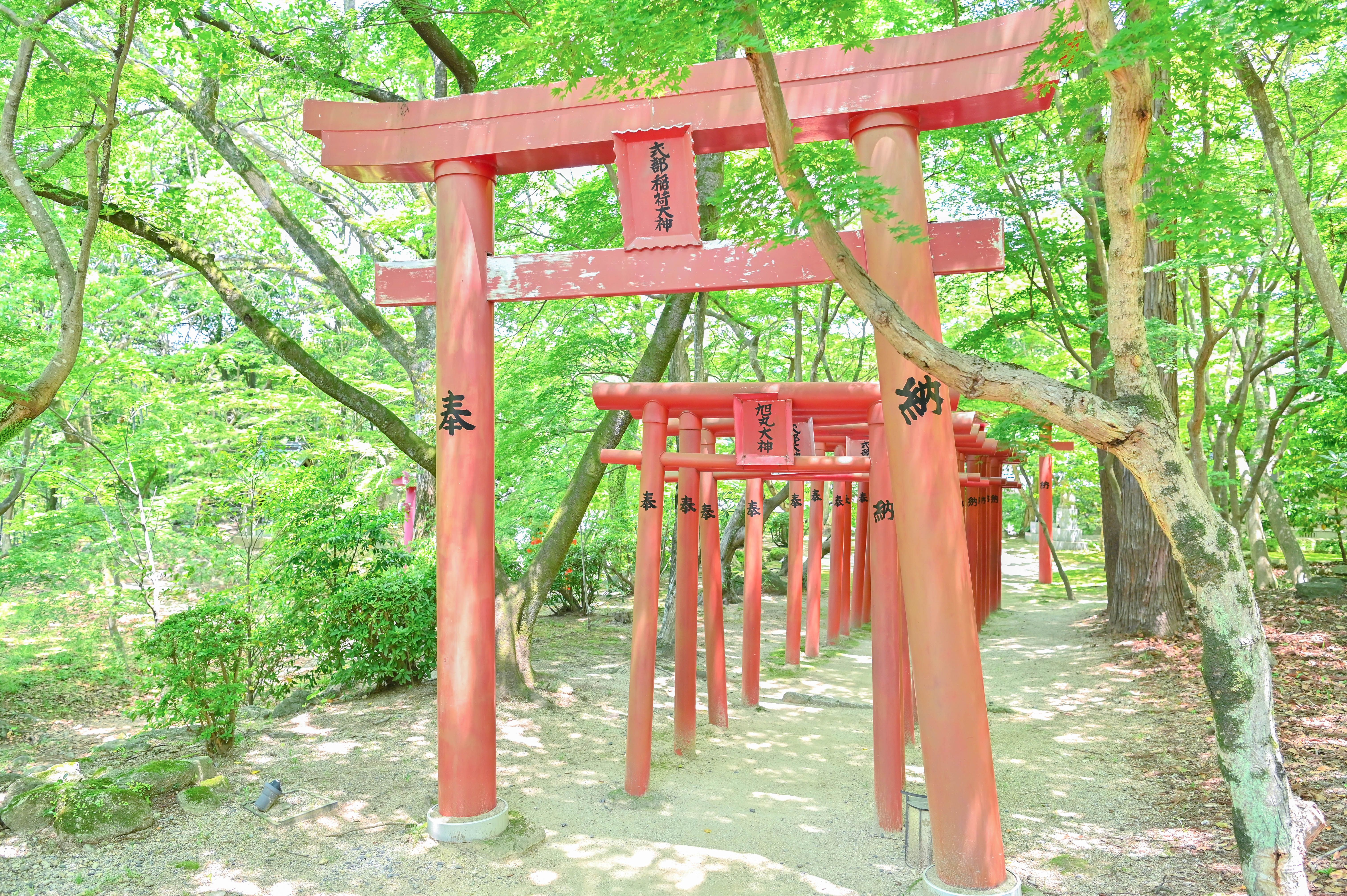 本殿に向かう途中には、朱色の鳥居が連なる式部稲荷社や、