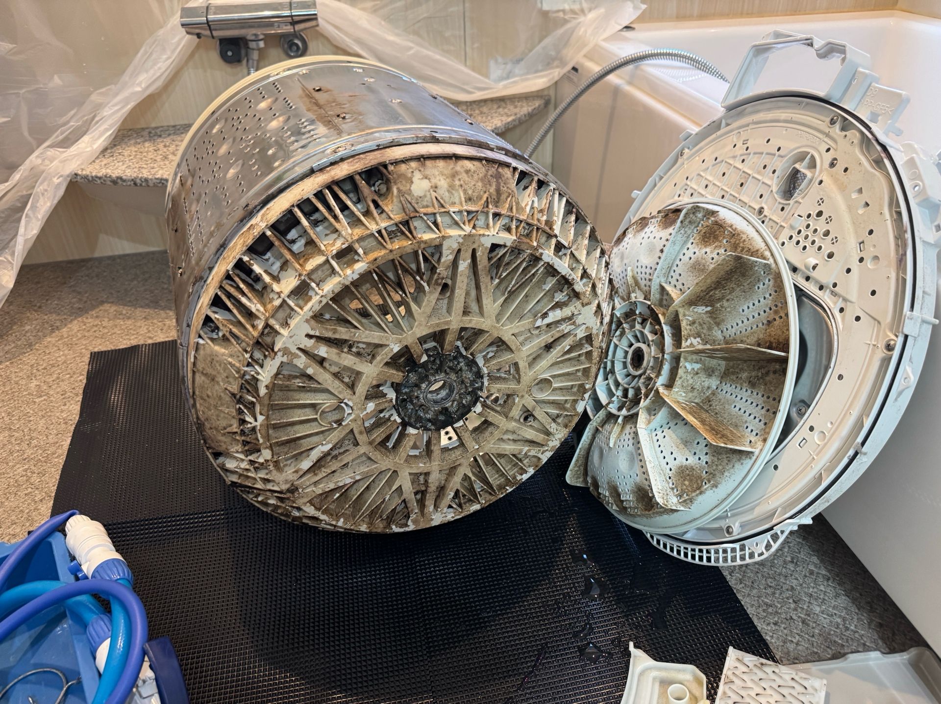 洗濯物に黒いワカメみたいなのが付く症状で当店へご依頼いただきました。