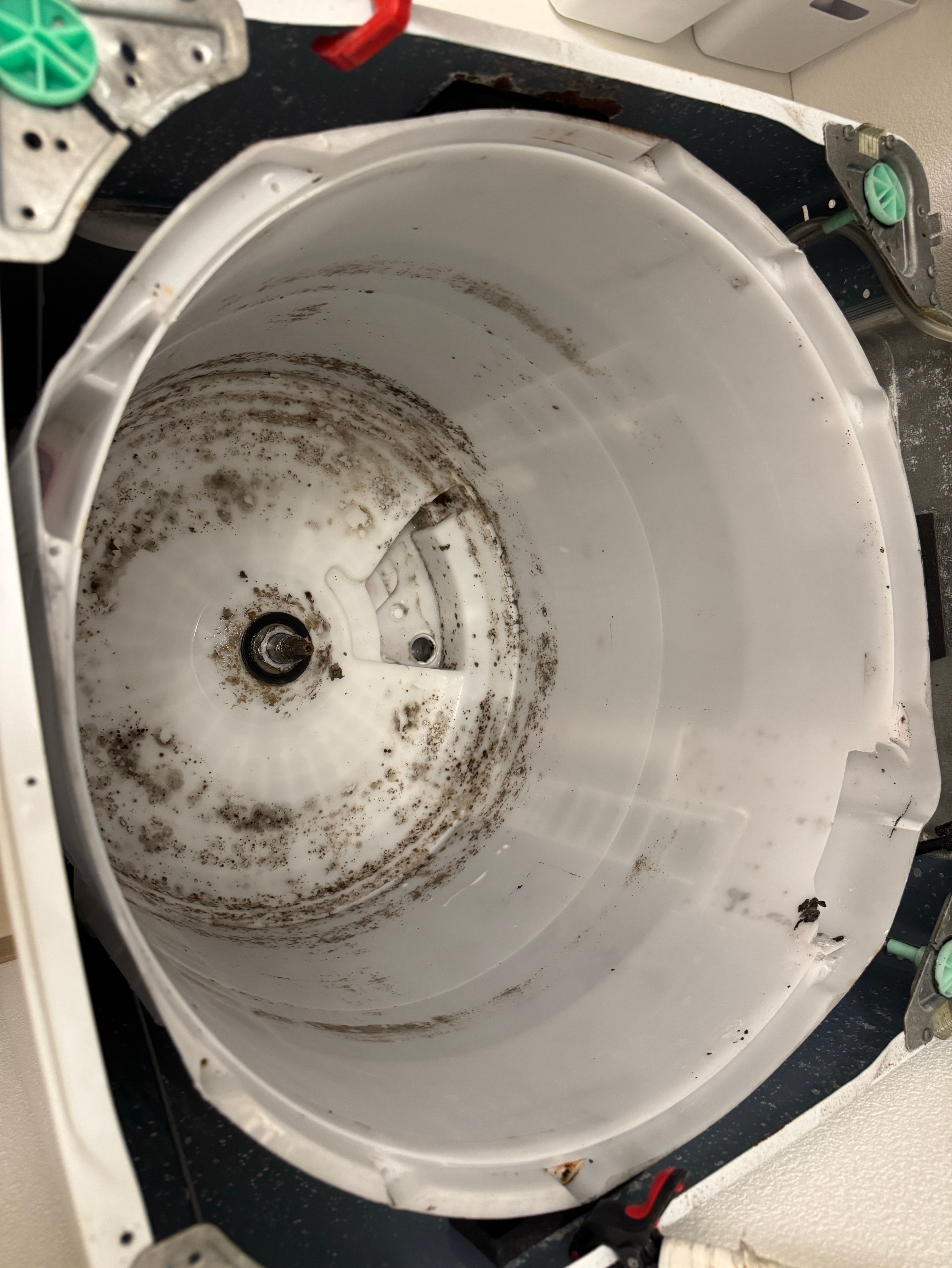 洗濯槽側は、底部にカビ汚れの蓄積が多くありました。
