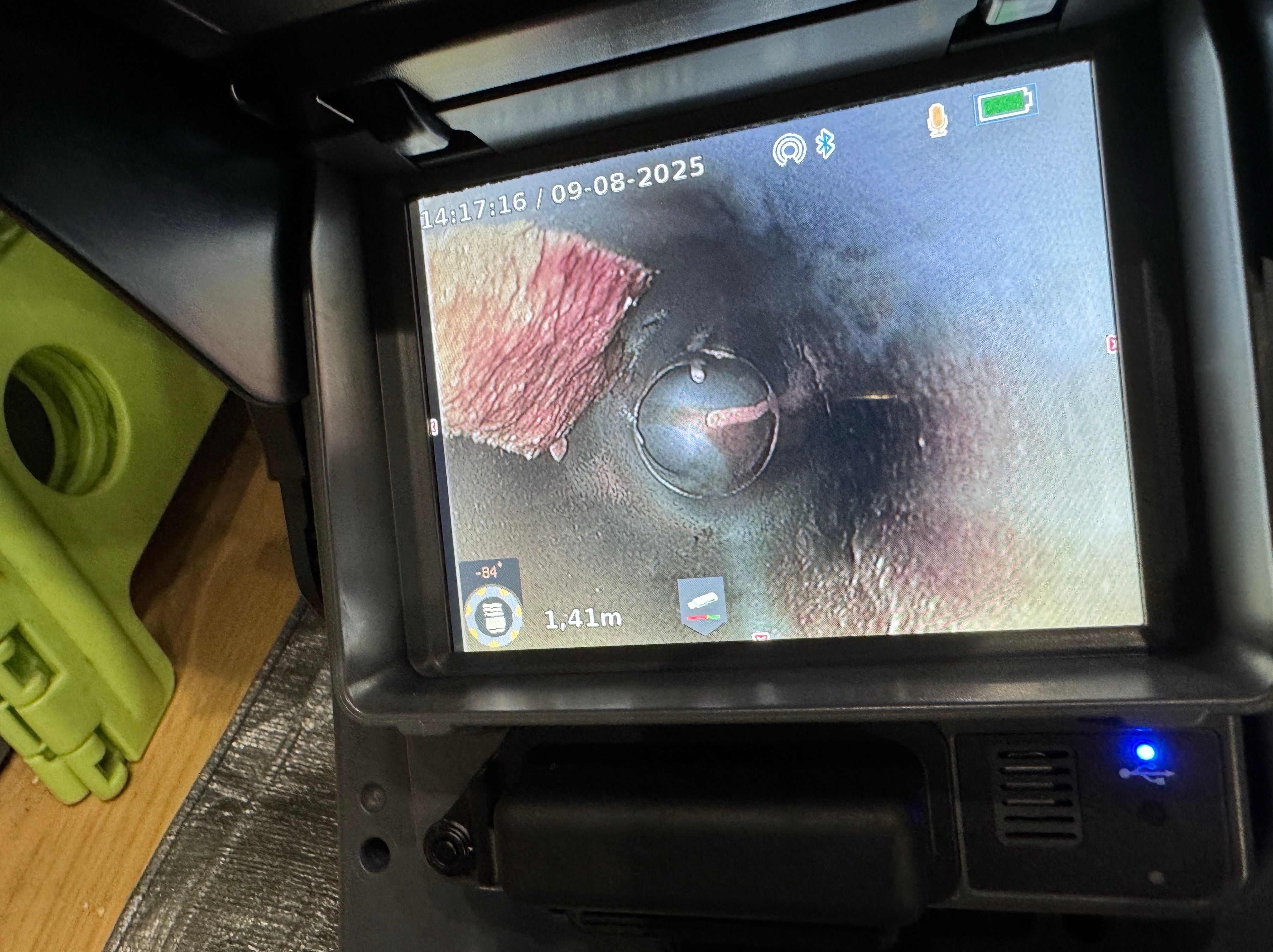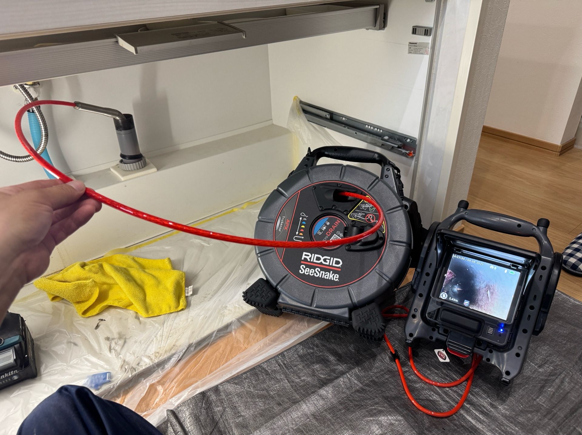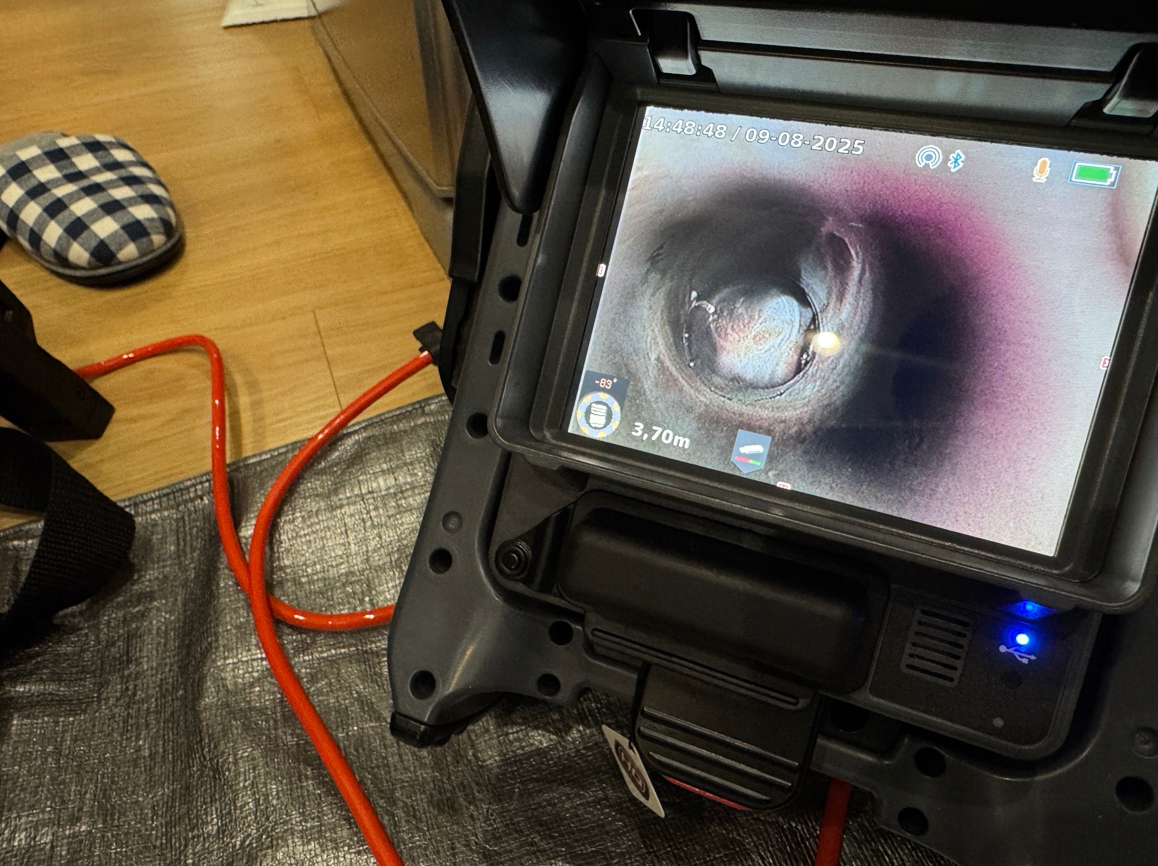 検査カメラを使って、作業前の状態をお客様に確認してもらい洗浄を開始します。