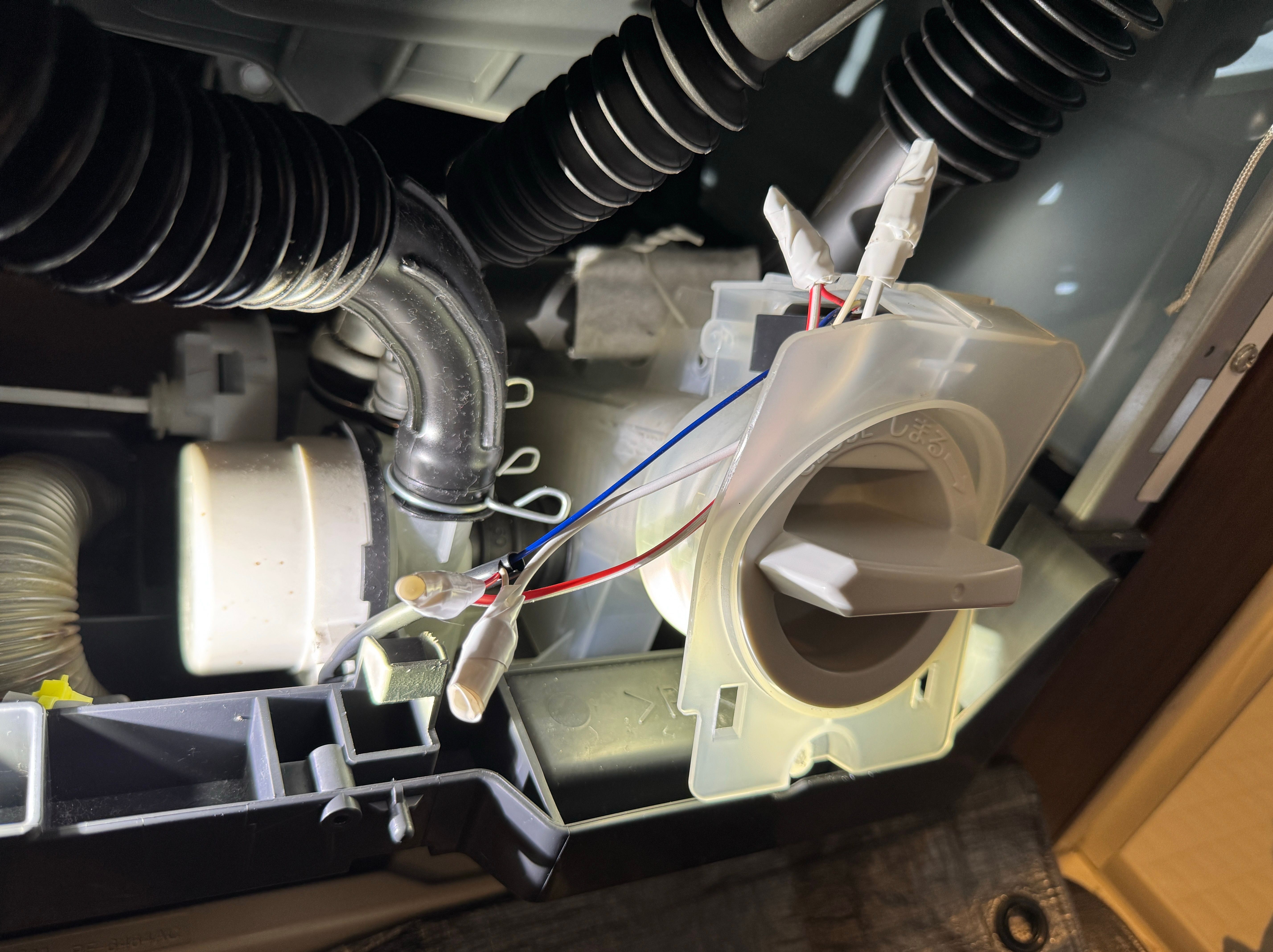 洗濯機を前に傾けたらプチっと音がしたと写真を送ってもらうと