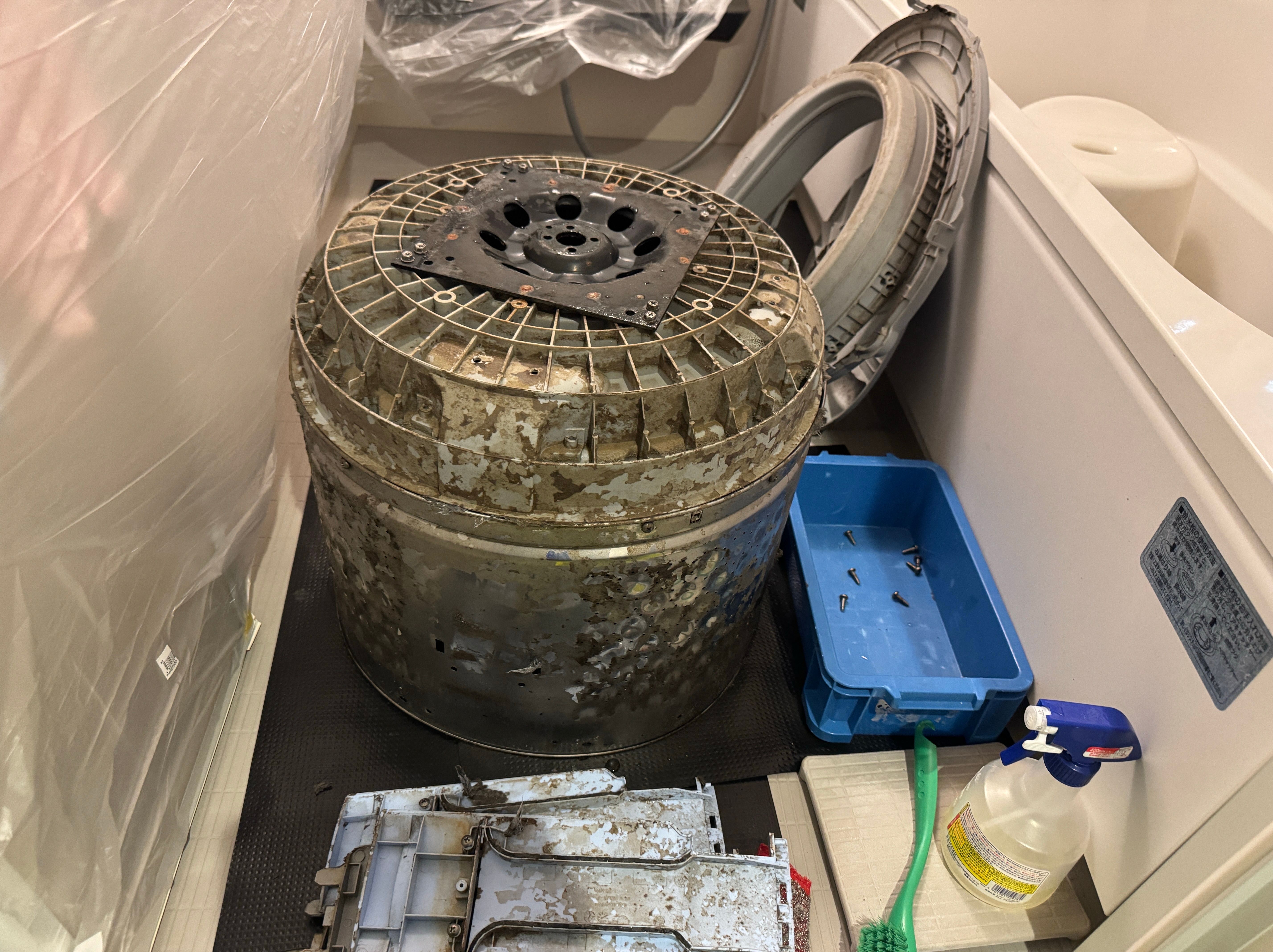 石鹸成分の入った洗剤を使っておられてますので、かなり汚れが蓄積された状態でした。