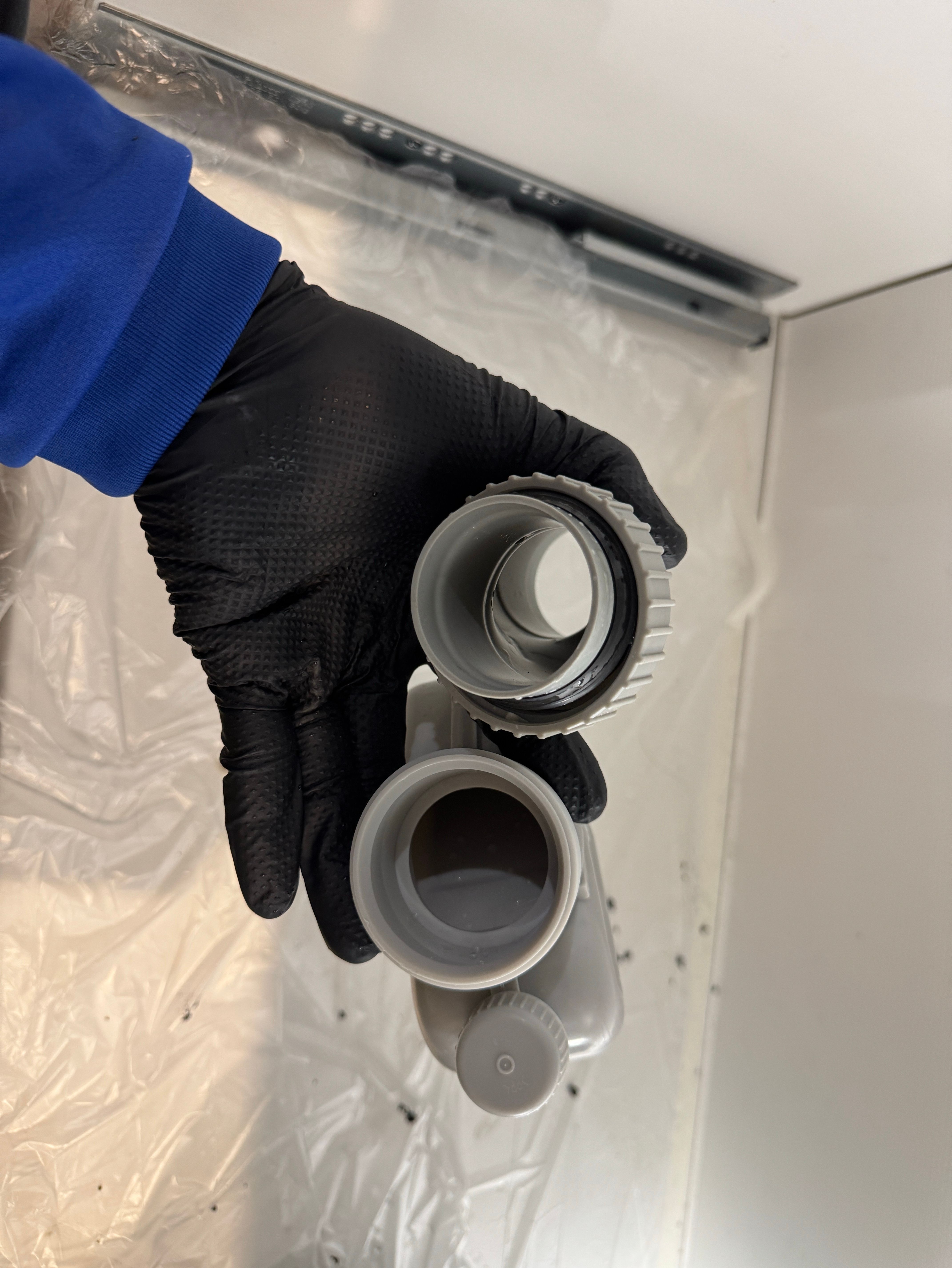 キッチンの排水トラップは脂汚れが蓄積した状態でしたので清掃をしました。