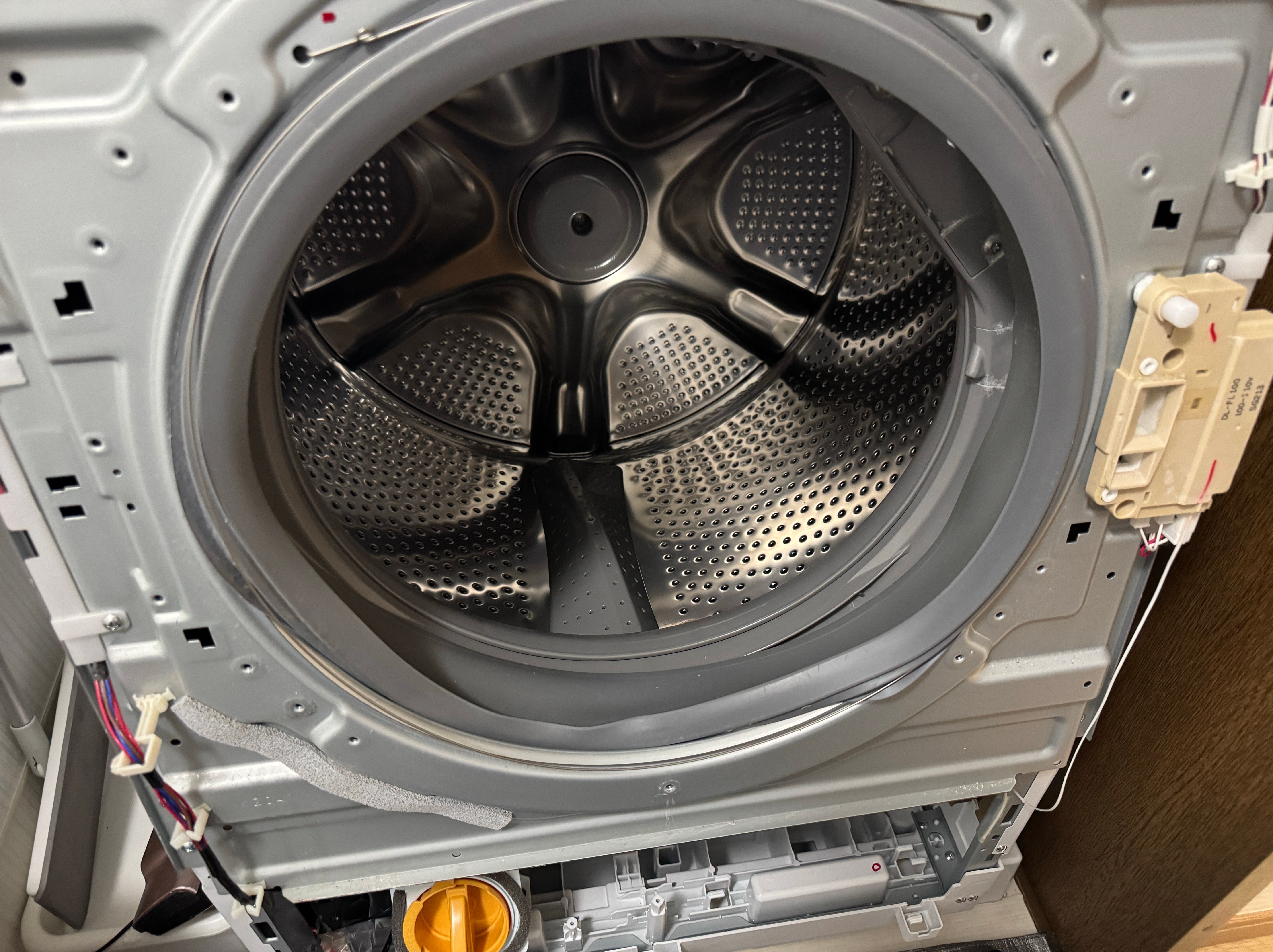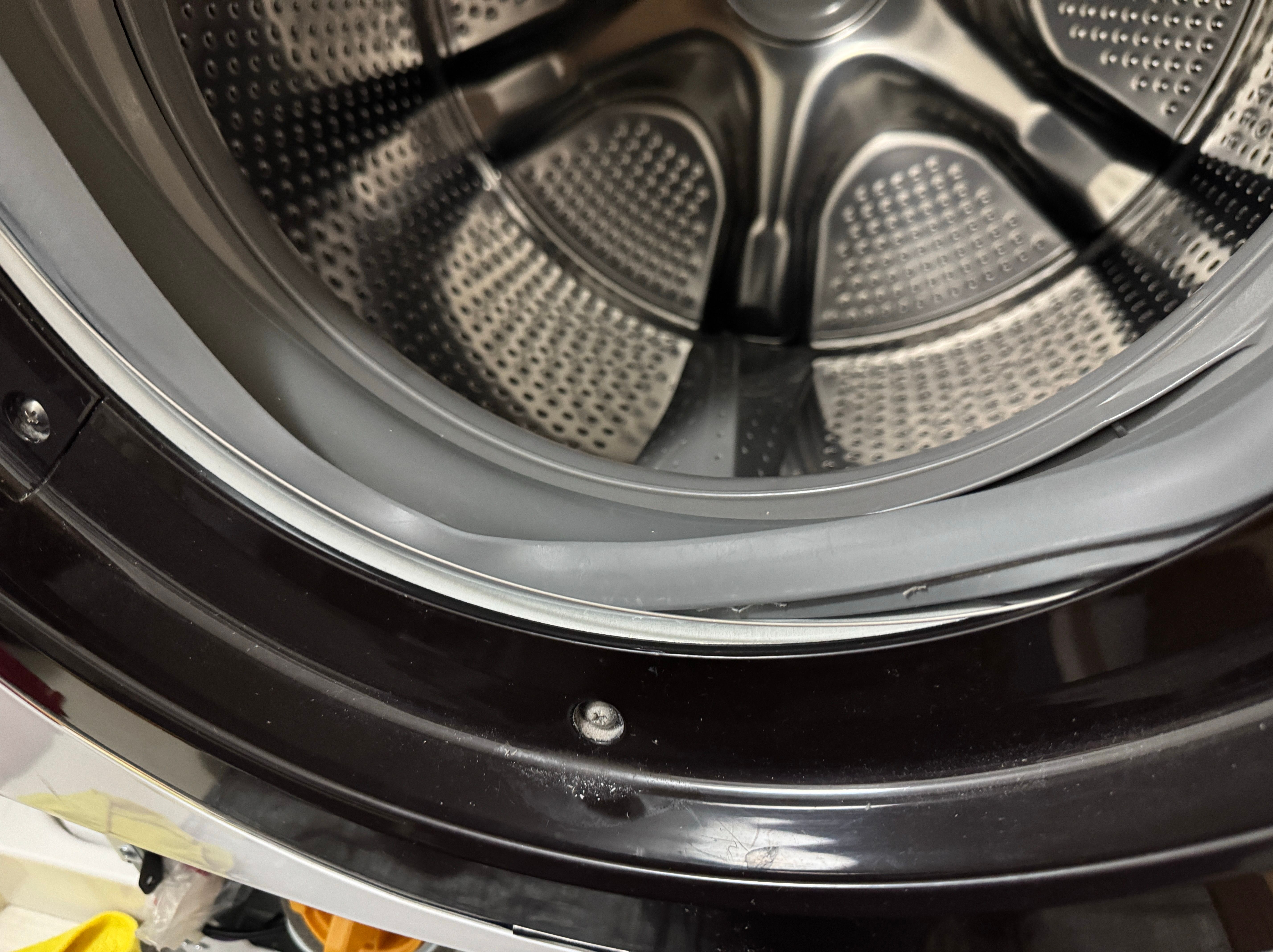 お客様にヒアリングすると、おそらく洗濯物を入れる際に押し込んでいる時にパッキンが引っ掛かり外れてしまったと思われます。