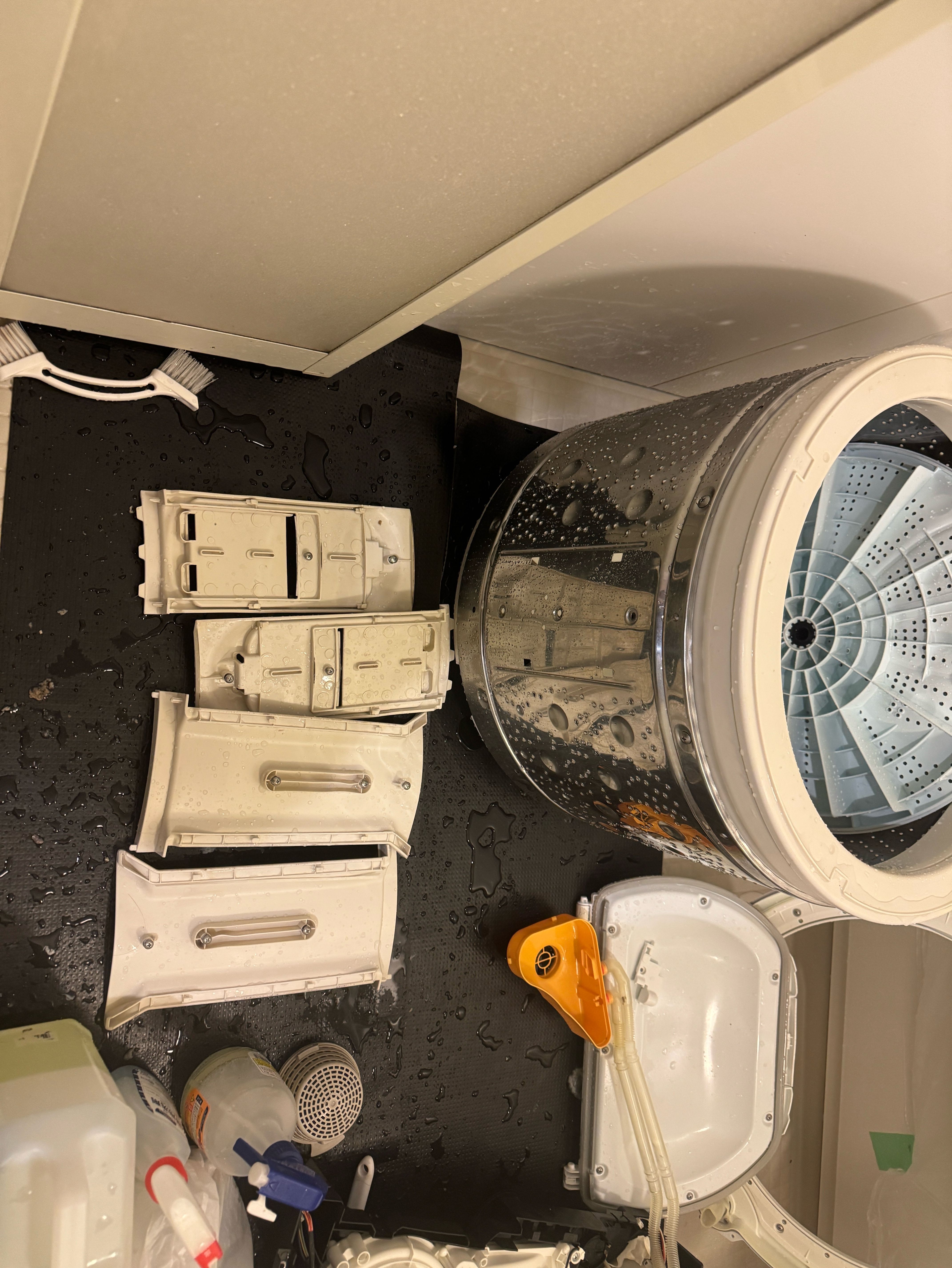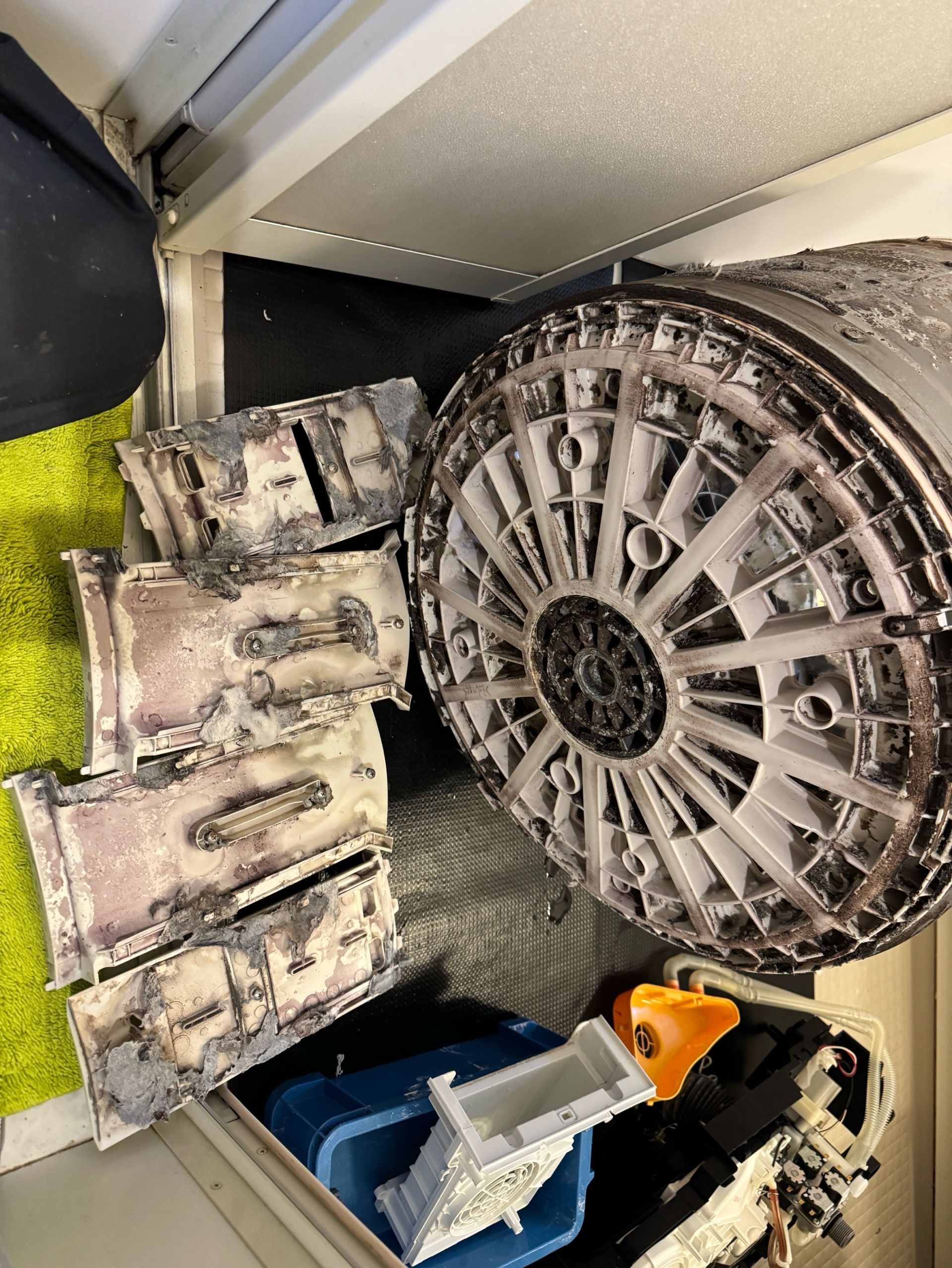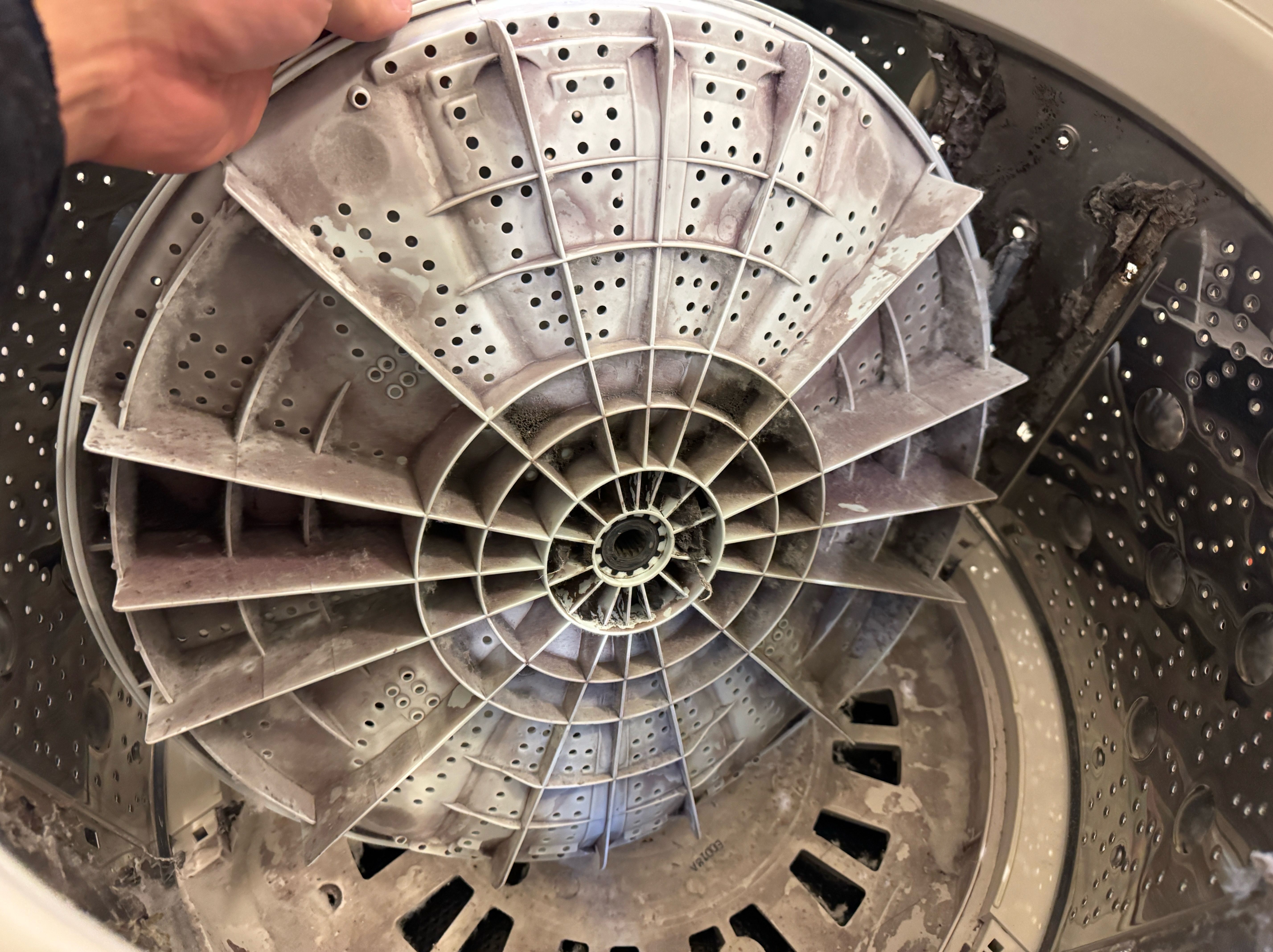 お話を聞くと、お子さんにワセリンを使っていると仰っており分解をすると、ワセリンが洗濯槽に溜まっておりそれに乾燥のホコリなどが付着してかなり酷い状態になっておりました。