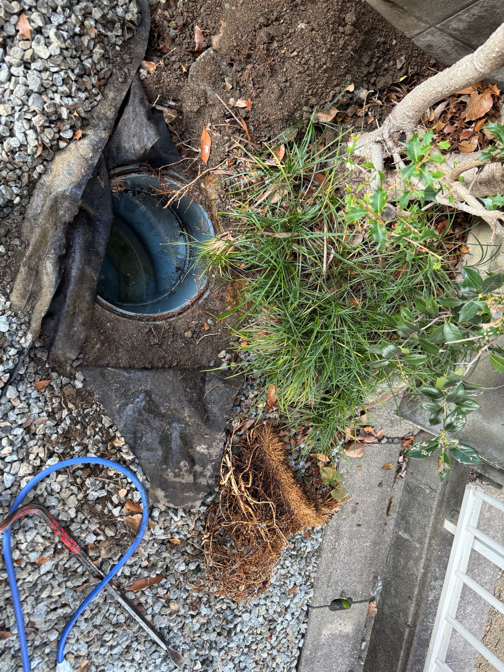 蓋を開けると、中は木の根がビッシリと有り原因が特定できました。