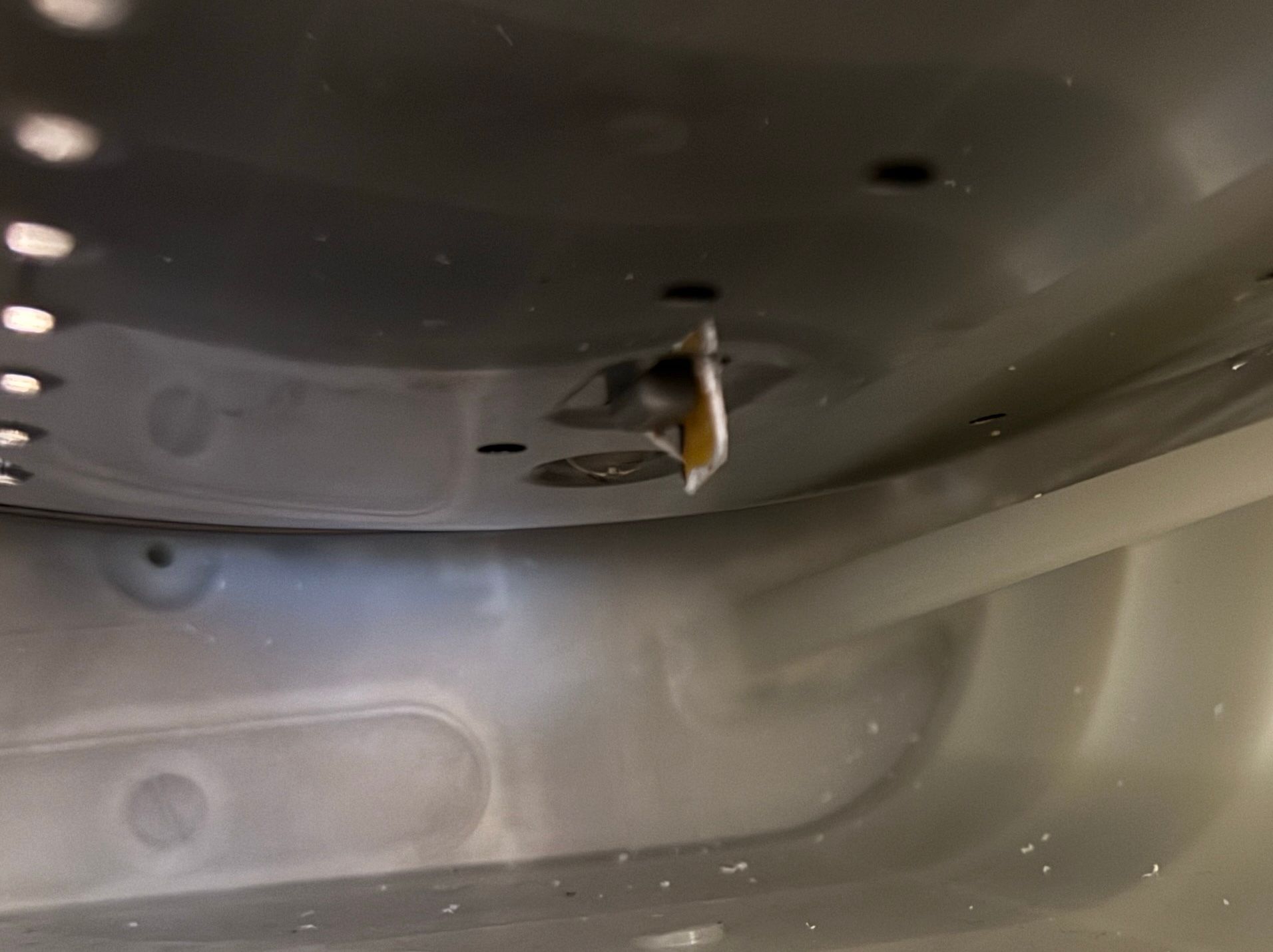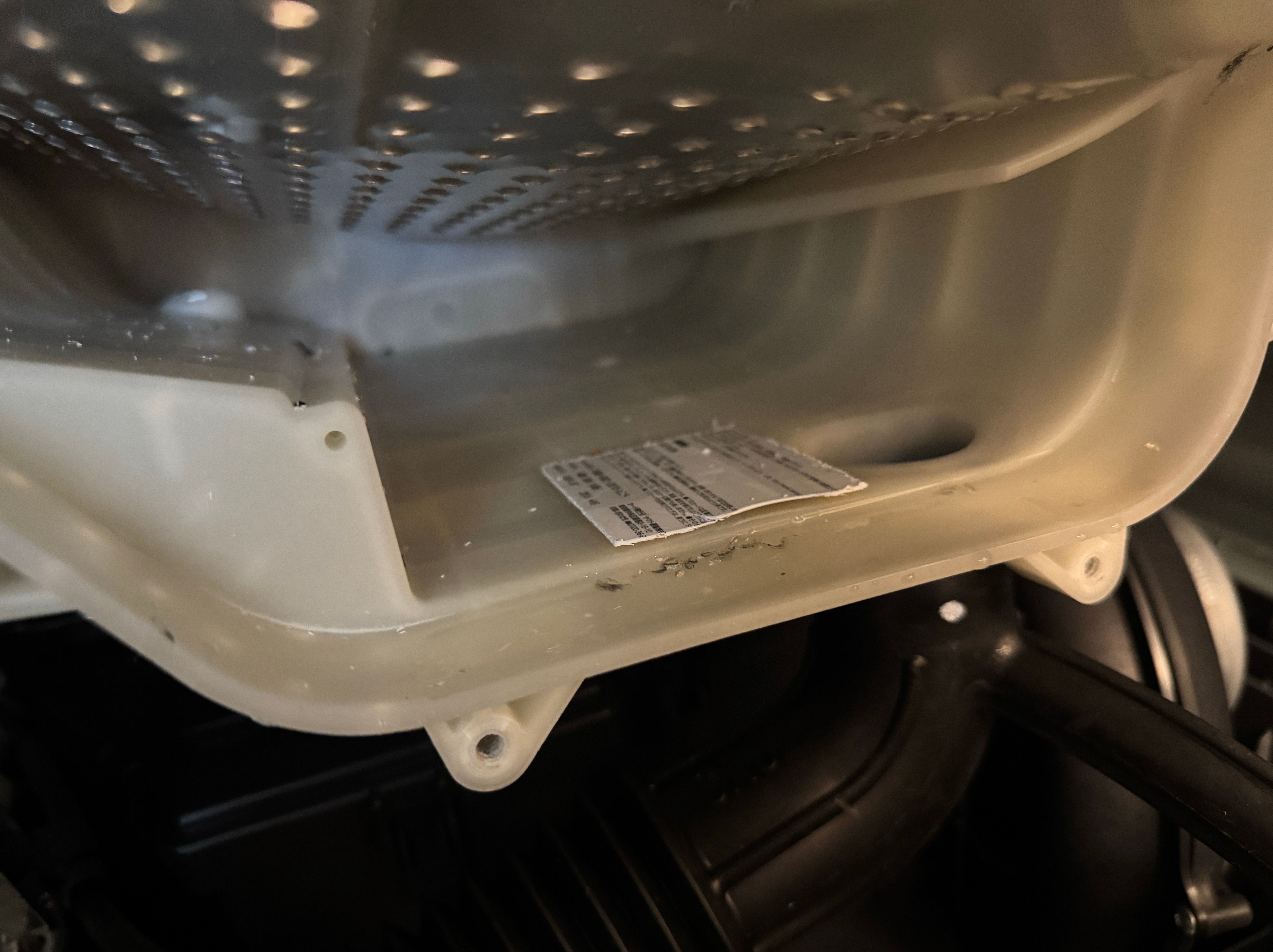 割れた破片が洗濯槽の穴に刺さっておりました。