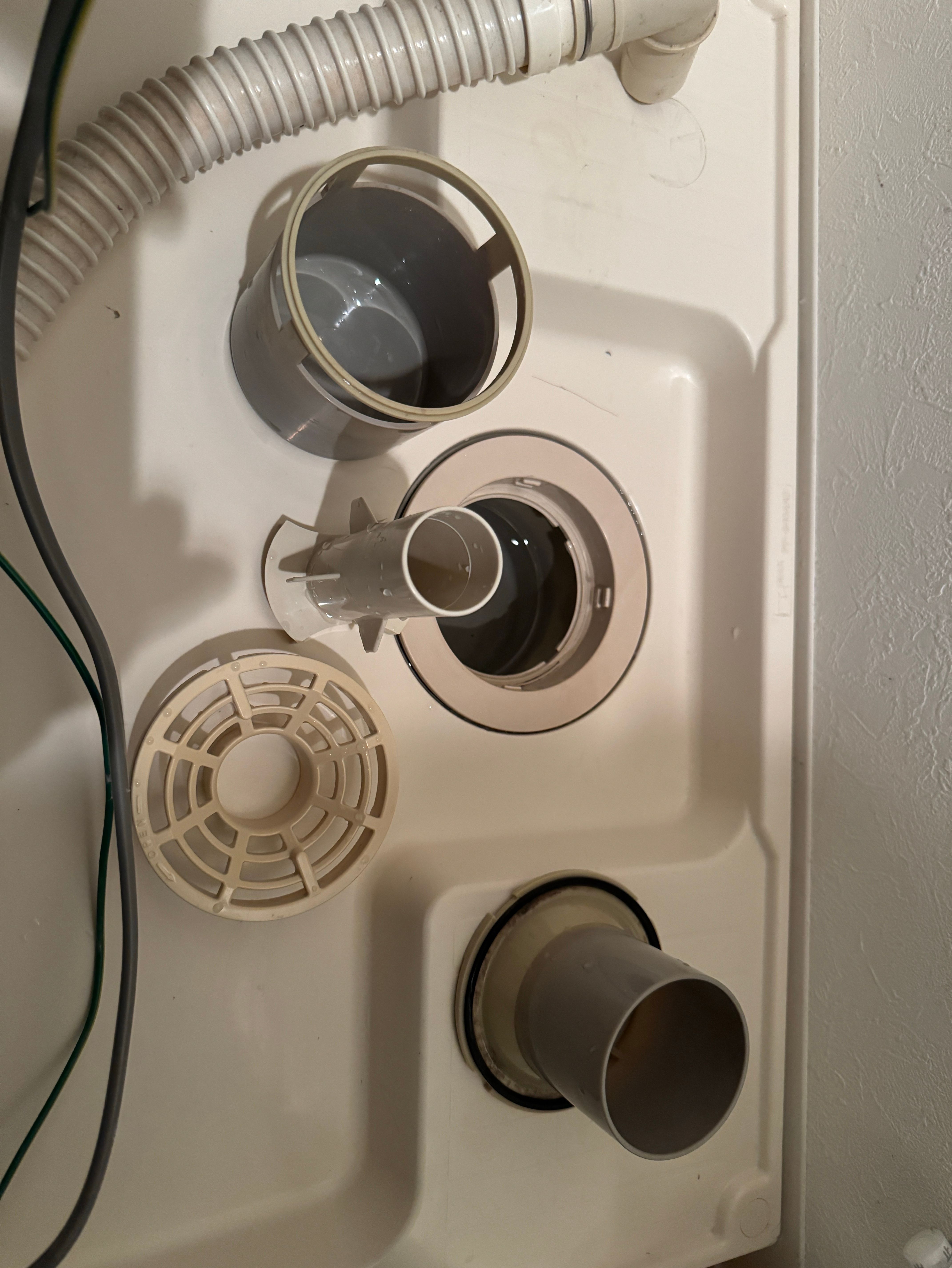 排水トラップが洗濯機の下にあるので、パネルを外して排水テストをすると逆流してきたので、排水トラップの詰まりだと特定できました。