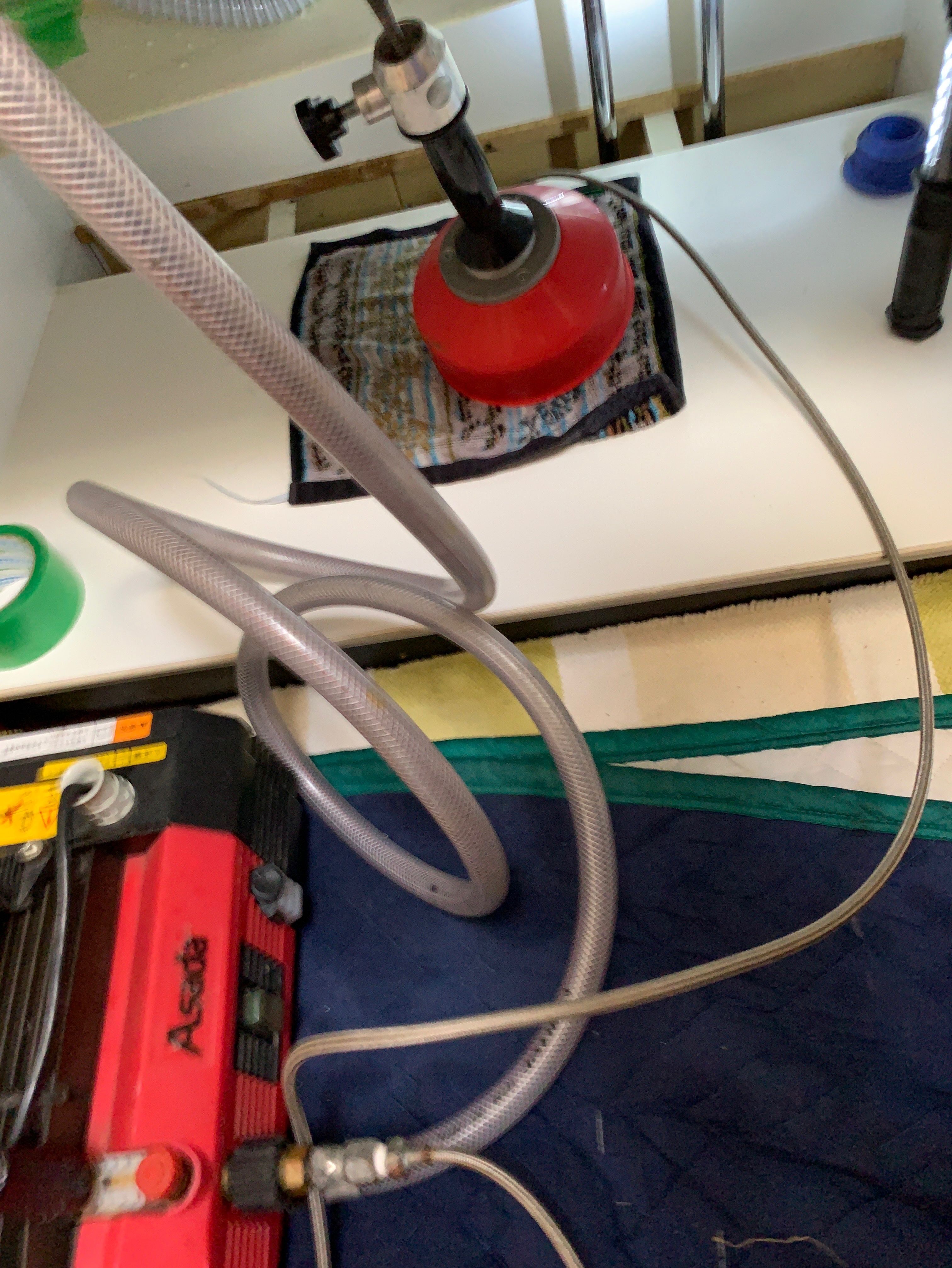 まずはトーラーにてキッチン配管に高圧洗浄ホースの通り道をつくってからの作業となりました。