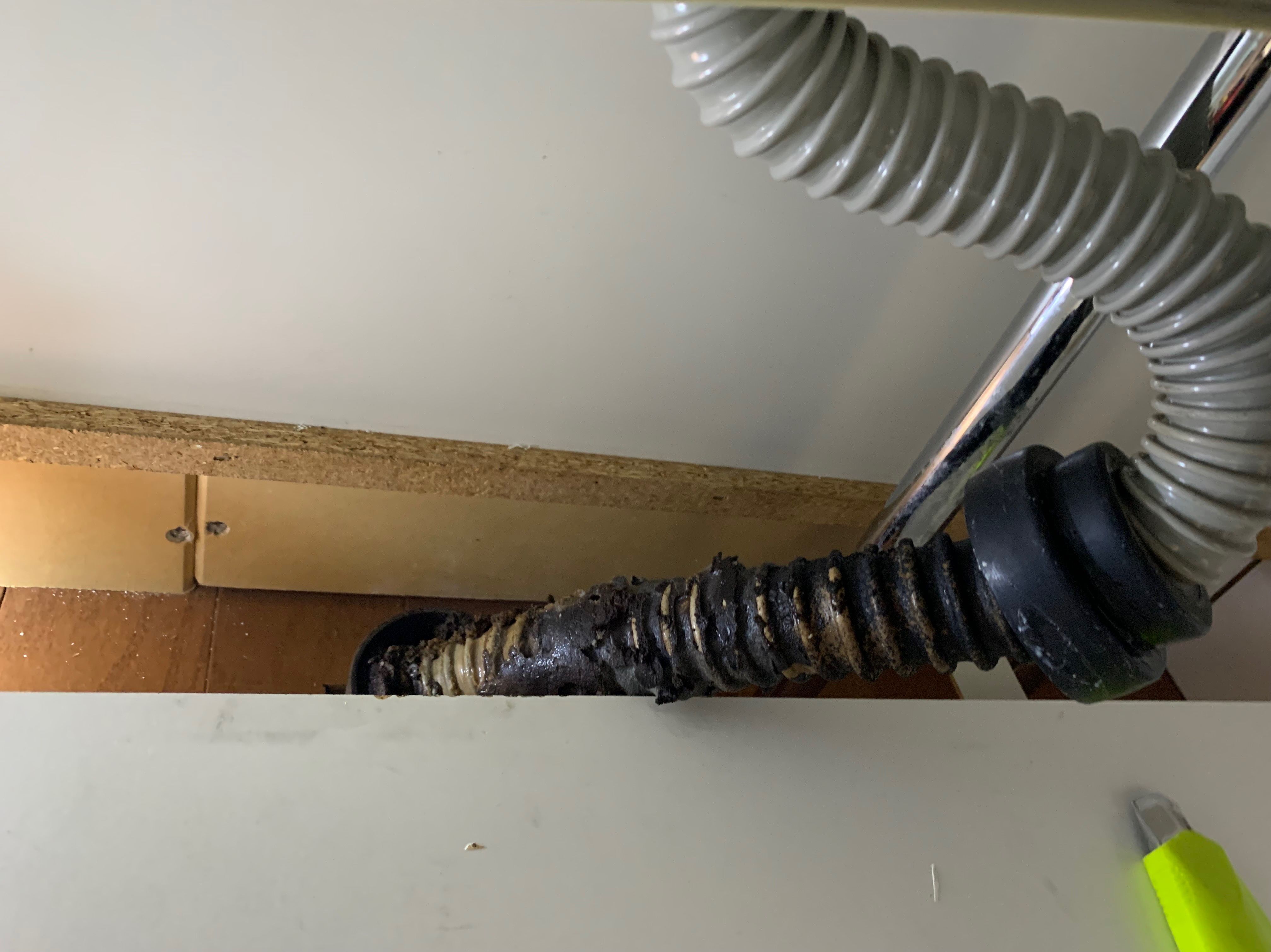 今回はキッチンの流れが悪いとのご用命でした。現地で作業をしたところラーメン屋さんレベルの詰まり方で配管洗浄の際に高圧洗浄のホースが入って行きませんでした。