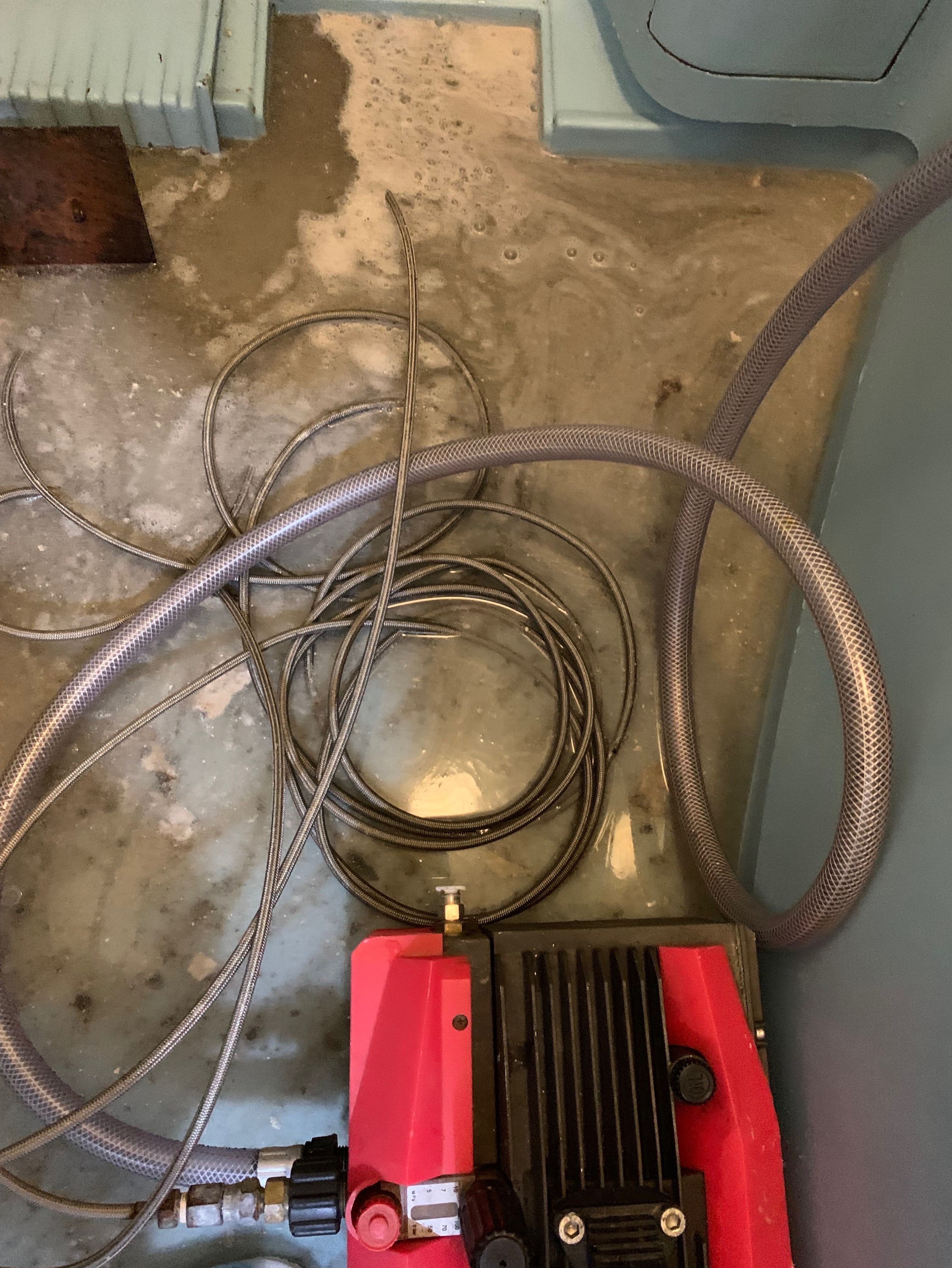 高圧洗浄作業にて配管洗浄を行いましたが、配管の掃除にも限界があり、築50年間の配管です。今後は定期的なメンテナンスにて配管洗浄をお勧め致しました。