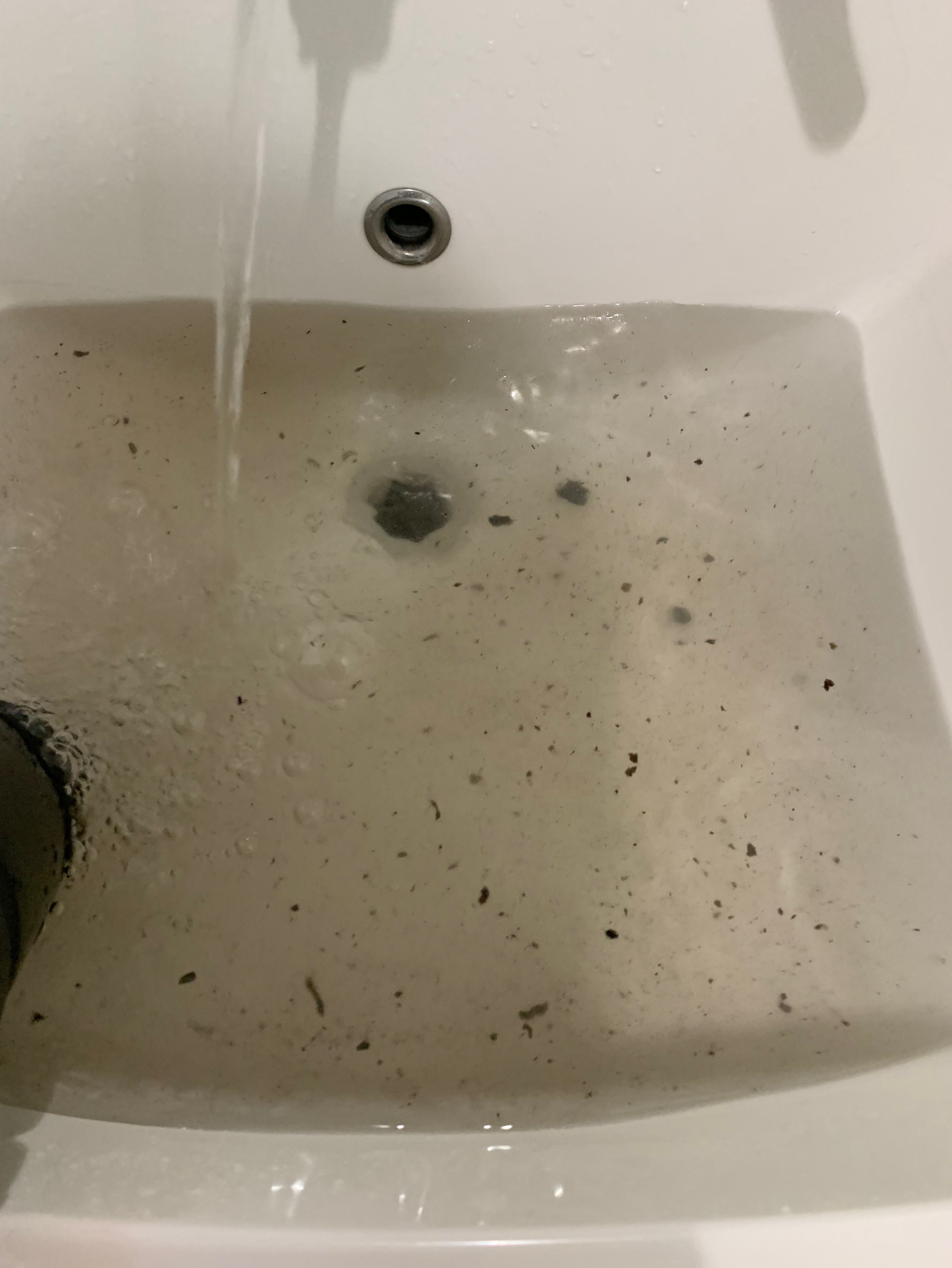 4.洗面所近くの屋外横引き埋設配管の汚れが原因。
