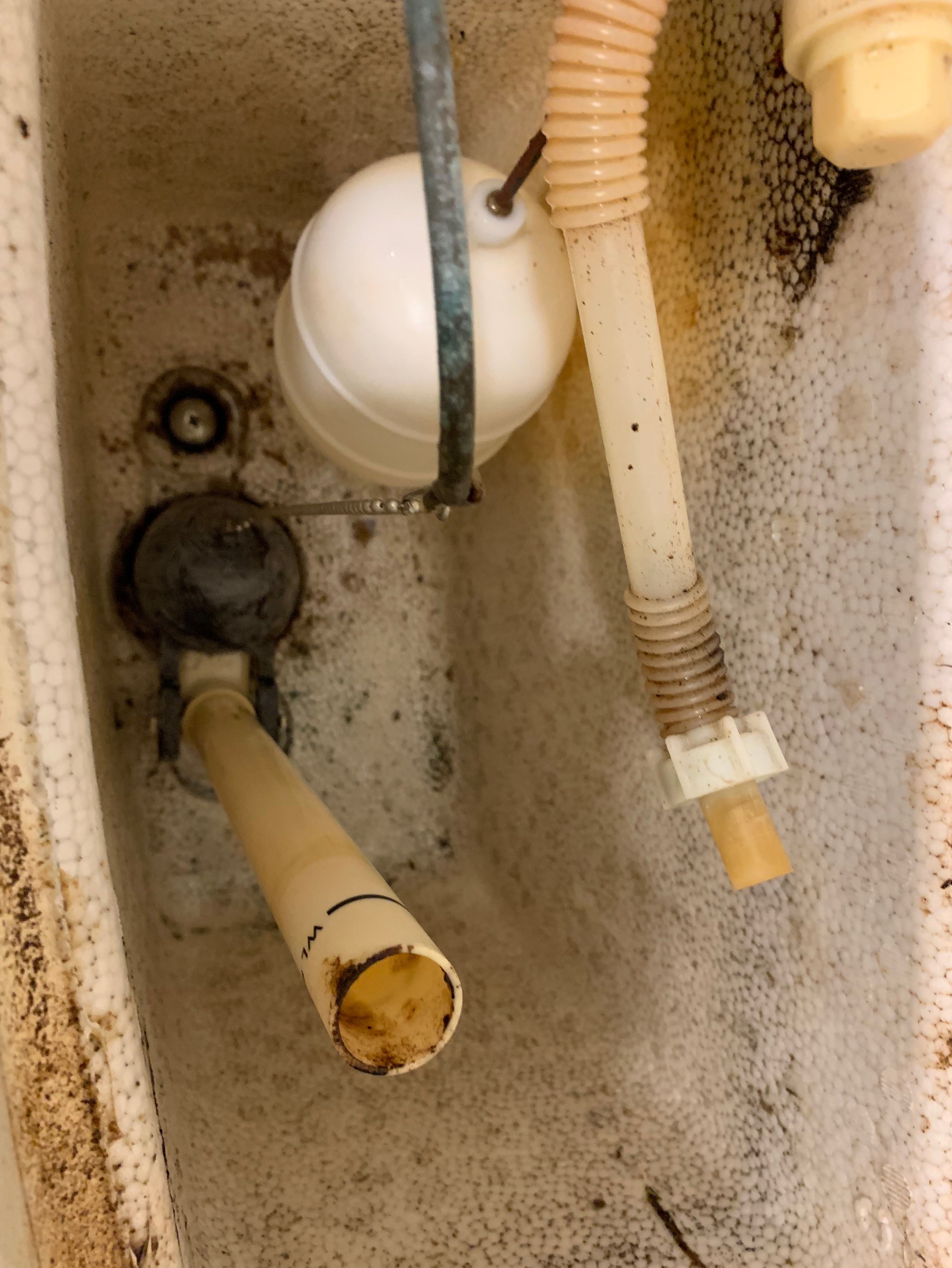 トイレの便器内にチョロチョロと水が流れ続けて水漏れしておりました。原因はゴムフロート弁の経年劣化によるものです。