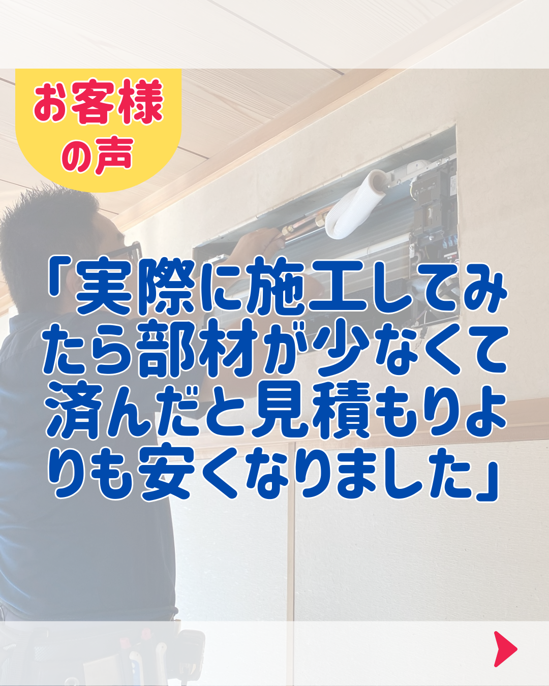 当初の見積もり対応も迅速でしたし、実際に施工してみたら部材が少なくて済んだと見積もりよりも安くなりました。