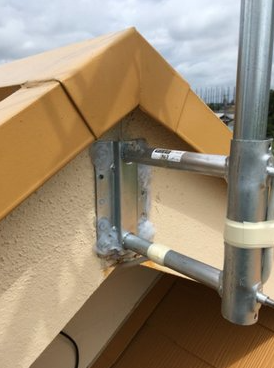 ◆下の写真のように・破風板 ( はふいた )サイドベース取付が標準施工となります。