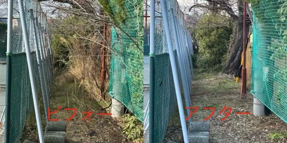 テニス場とフェンスの間の、草刈りと剪定をしてきました。