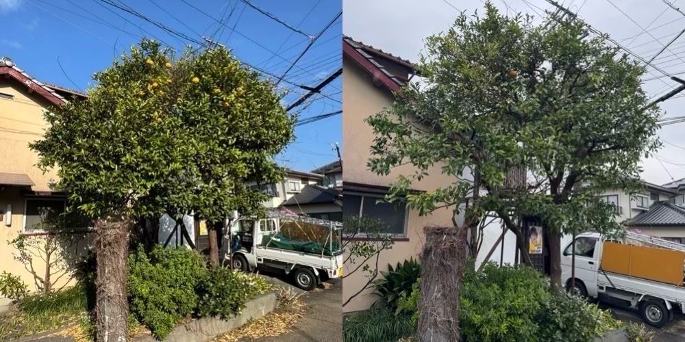 電線に掛かっている部分を下げ、風通しと日当たりを良くしました。