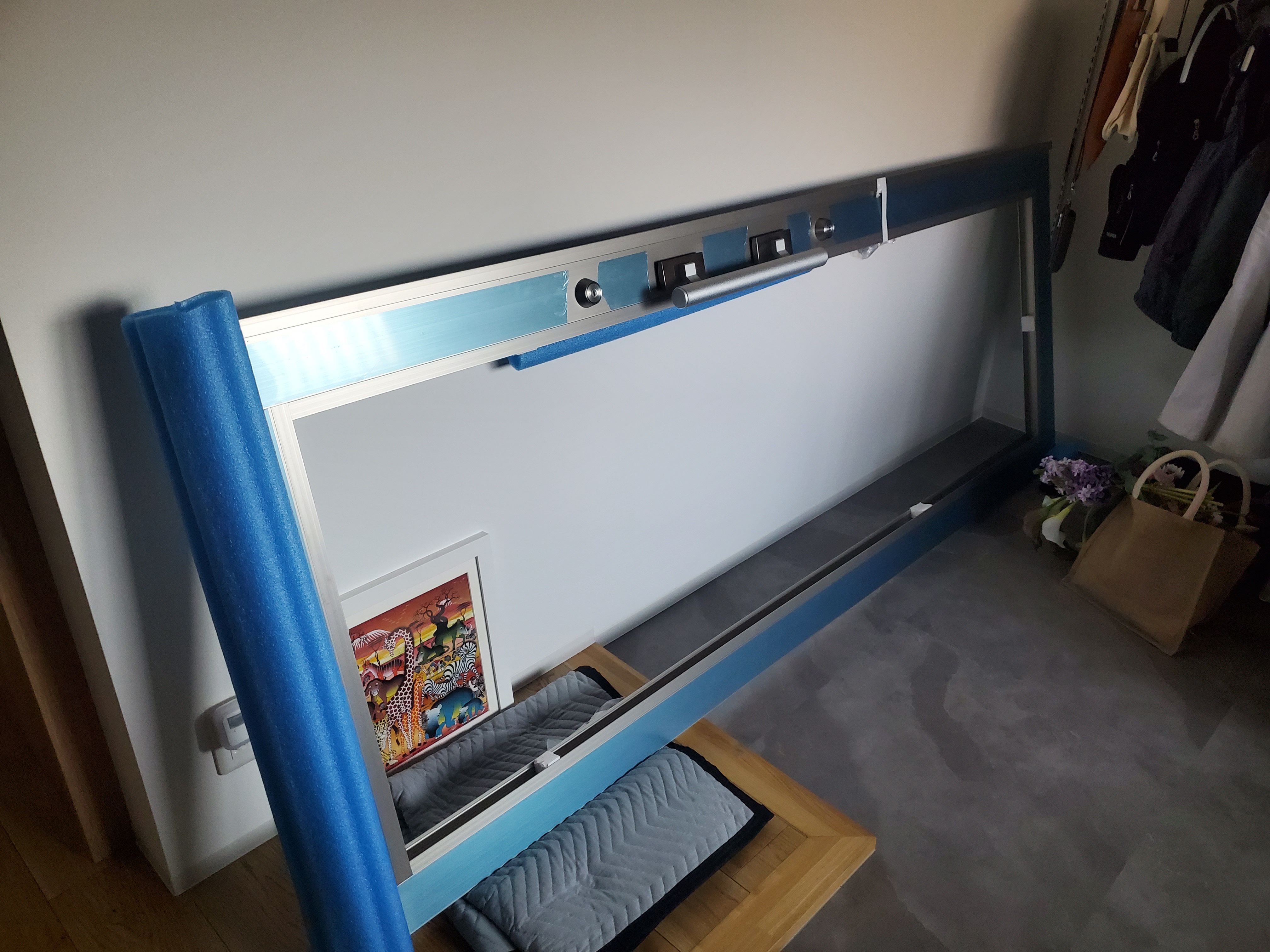 お客様からのご依頼で店舗ドアを製作しました。完成したドアを工場へ取りに行ってきました。全面ガラス仕様で、ガラスは防犯ガラスをメーカーへ依頼してあります。