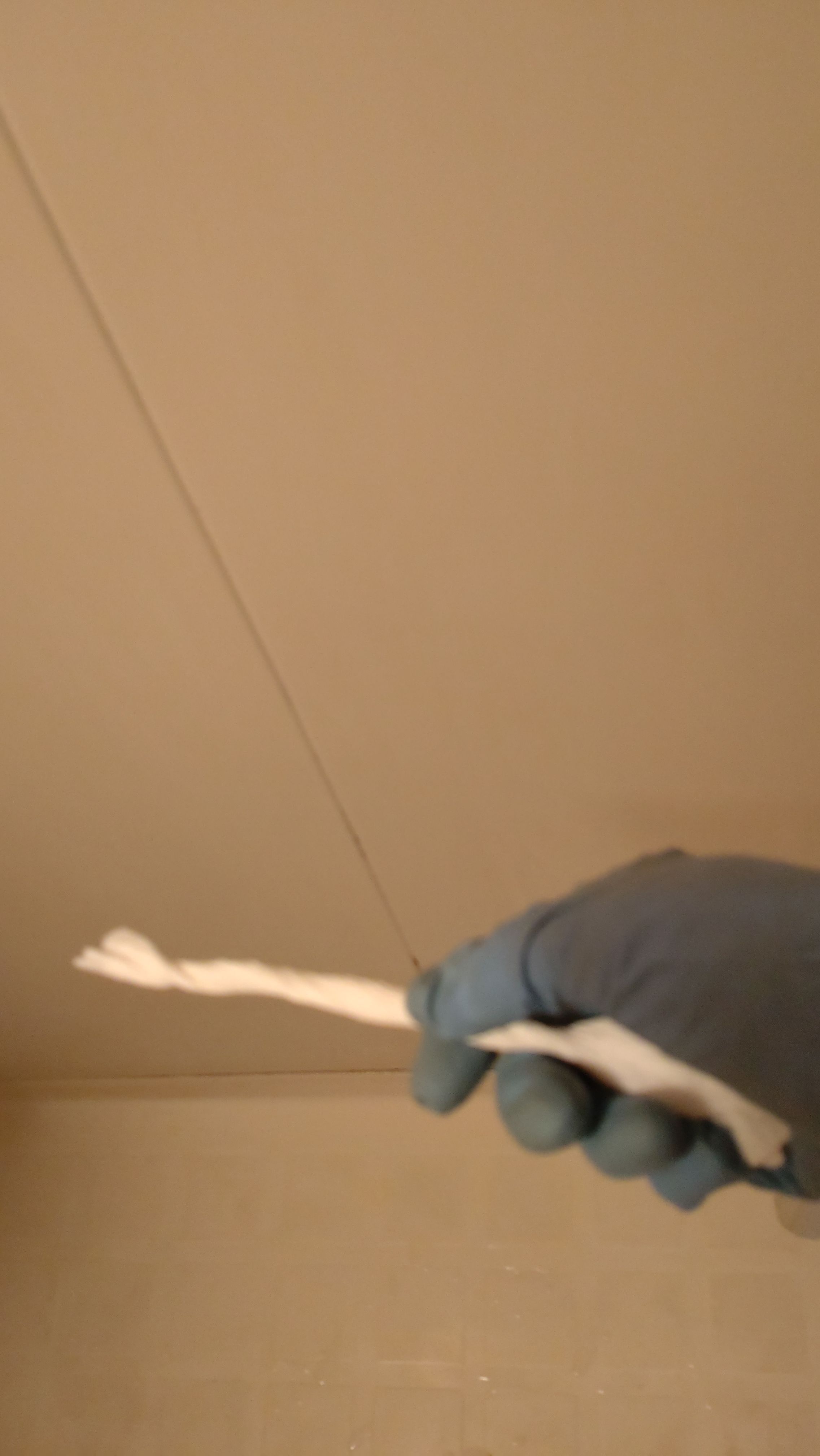 対した事では無いので、全部伝えてしまうとキッチンペーパーなどを細く”こより”状に束ねて、染みこませてそれをカビの箇所に貼りつています。